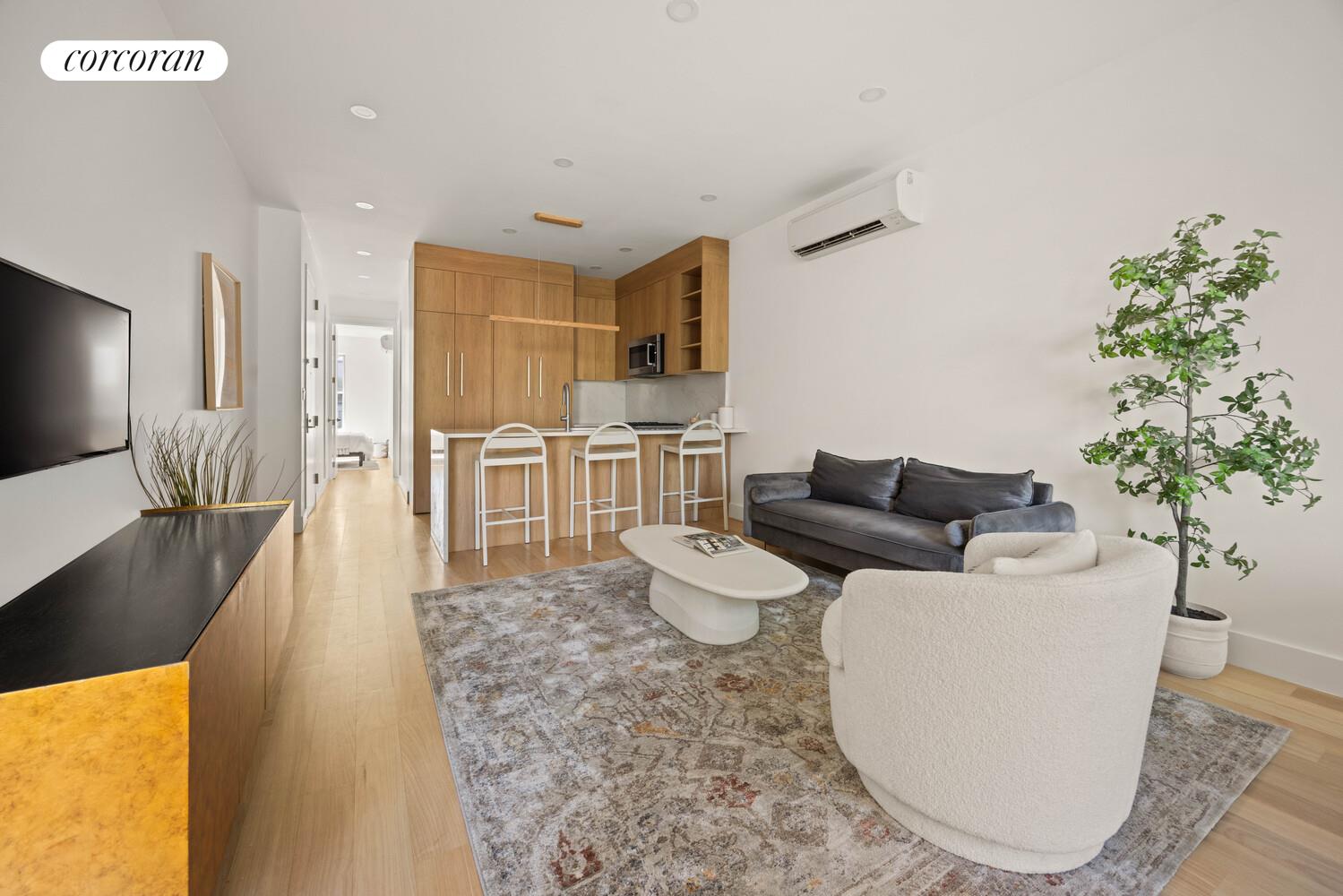 • Welcome to Unit 3 at 1230 Putnam Avenue - a beautifully designed two-bedroom, two-bathroom floor-through residence in a newly built, boutique three-unit condominium in the heart of Bushwick. Spanning 1,006 square feet, with private rooftop access, this modern home blends thoughtful functionality with contemporary style, offering a spacious and well-balanced layout for comfortable living.