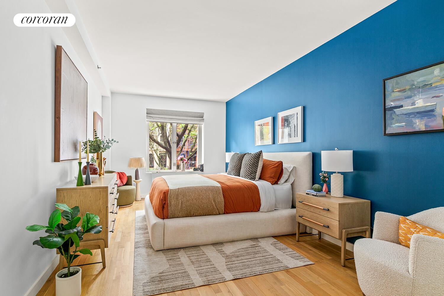 Practical charm meets vibrant Clinton Hill! This 2-bedroom, 2-bathroom at the Isabella condominium is an impressive 1,143 square feet, and offers a perfect blend of urban living, sophistication, and practicality. This apartment has a wonderful layout - huge living room, large open kitchen, and king-sized bedrooms. Add in the creature comforts - washer/dryer, excellent appliances, new heating/air-conditioning units, mechanized shades, and you have a very large, comfortable space at the confluence of Clinton Hill, Prospect Heights, and Fort Greene. The best of all worlds! The oversized living room window perfectly frames the view of gorgeous Clinton Hill brownstones, and lets in an abundance of light. The open-concept kitchen is a home chef's dream, with a large center island and plenty of space to make memorable meals. Both bedrooms are very well-sized, have walk-in closets, and the primary bedroom features an en-suite bath with a double shower.