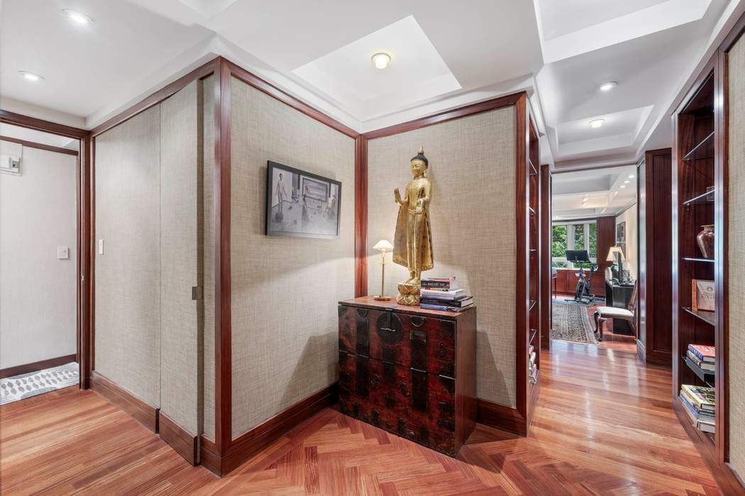 Welcome to 3CD, an elegant and extraordinarily rare offering at The Westmore - one of the greatest pre-war Art Deco gems at Columbus Circle. This bespoke home is the result of a seamless combination of two units into one massive, turn-key two-bedroom, two-bathroom residence. This stately and impressive offering is sure to inspire the most discerning of buyers, with not a single detail overlooked throughout the renovation. From custom mahogany millwork and moldings, to immaculate herringbone floors, to luxurious grass cloth wallpaper, beamed ceilings, and tailored lighting, this offering has it all, serving as an astounding opportunity for one lucky buyer. Upon entering, you are immediately greeted with peace and quiet. The home welcomes you with a convenient entry foyer which leads in to your graciously proportioned living and dining room. Adorned with charming treetop views, sink in to this utterly private and tranquil space for the ultimate retreat from the busy city life. Lutron lighting, through wall air conditioning, and large, double paned bay windows elevate the room for maximum comfort. Off of the living room is your dining area, surrounded by custom built-ins and conveniently connected right to the kitchen. Equipped for standard nights in or entertaining guests, the combination of top-of-the-line Wolf Appliances, custom mosaic tile backsplash and countertops, and a properly allocated dining space makes for a pleasurable experience no matter the occasion. A combination of straight plank and herringbone wood flooring lines the hallways, leading you to the bedroom and bathroom suites. The home features well appointed, serene bedrooms designed for ultimate relaxation and restful nights. In the bathrooms, soft lighting, plush finishes, and a calming color palette create a serene atmosphere that feels like a personal sanctuary, inviting you to truly unwind. Travertine marble details evoke a spa-like ambiance, accompanied by high end finishes and efficient storage space to elevate your daily routine. Other apartment notables include abundant yet discreet closet space, brushed chrome hardware throughout, and a Miele Washer and Dryer in unit. This gem is not to be missed. The Westmore, located on West 57th Street in Midtown Manhattan—right in the heart of the world-renowned Billionaires' Row—is one of New York City’s premier Condops. A Condop offers the best of both worlds: cooperative ownership with the flexibility of condominium rules, including the ability to sublet freely and use the unit as a pied-à-terre. Designed by the notable New York architecture firm Boak & Paris, The Westmore features timeless Art Deco styling and adds a touch of elegance to the block between Eighth and Ninth Avenues. Residents enjoy a host of amenities including two beautifully landscaped roof terraces, a fitness center, full-time staff with 24-hour door attendant, live-in superintendent, bicycle storage, storage lockers, and a central laundry room. The building welcomes guarantors, gifting, co-purchasing, and parents buying for children. Subletting is permitted from day one with no restrictions. Pets are also welcome. Conveniently, major subway and bus lines are located just steps from the building's entrance, making city access effortless. Contact us for a private viewing of this extraordinary property today.