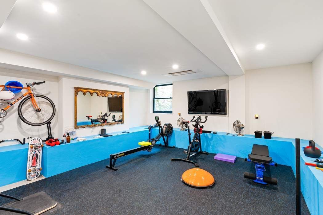 Newly excavated and finished with radiant-heated concrete floors, the lower level includes a large open space currently used as a gym, a full laundry room, and ample storage.