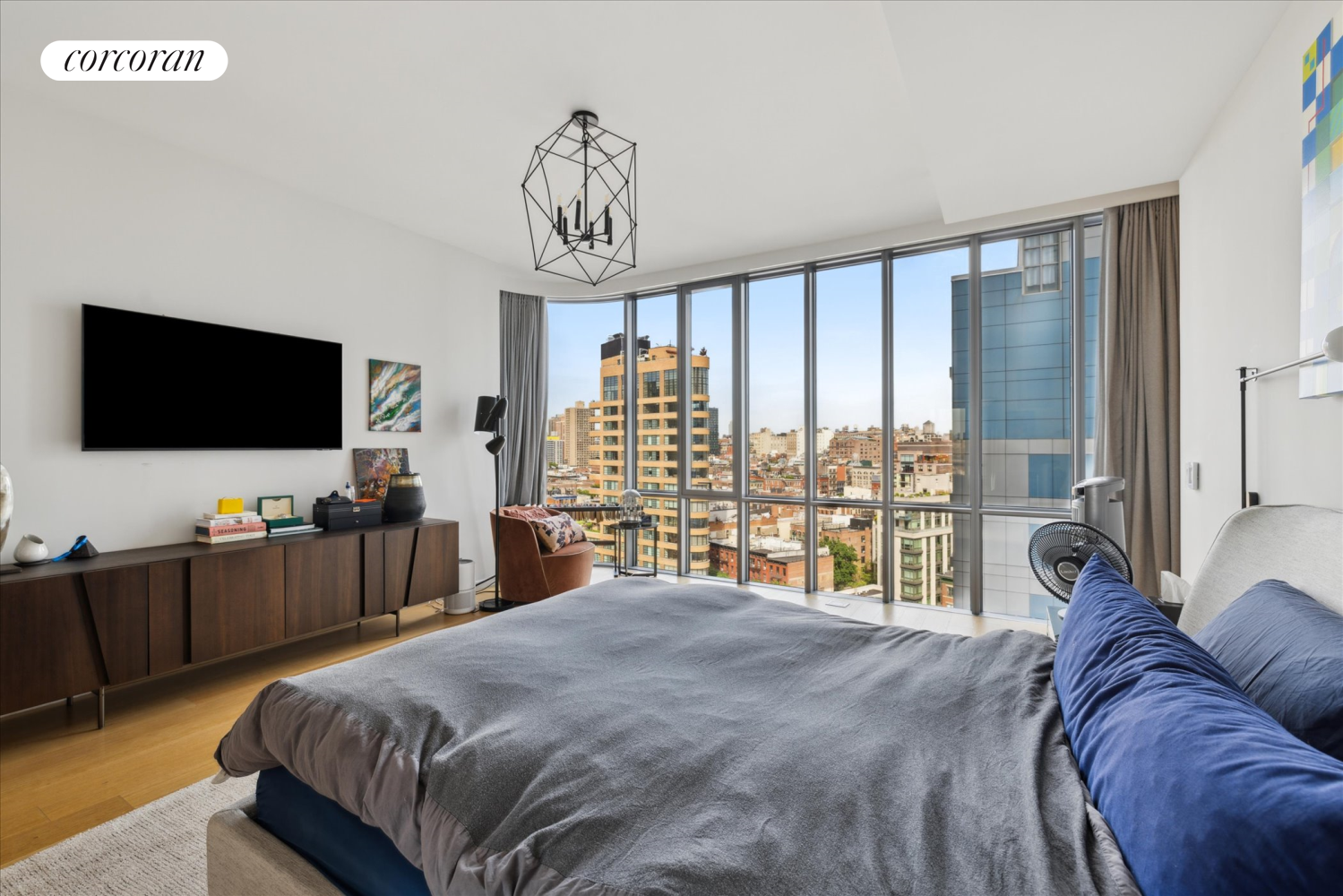 Upon entry and past the walkthrough coat closet and secluded powder room, the doors of your keyed elevator will give way to the astonishing, 780 square foot Great Room with floor to ceiling windows that extend the full length and width of the room, flooding the space with soft natural light. The Great Room opens directly in every direction onto an enormous wraparound private terrace that is as large, if not larger, than the interior, and comes complete with a private heated pool, an outdoor grill, and wet bar-perfect for entertaining or relaxing in the sun above the city.