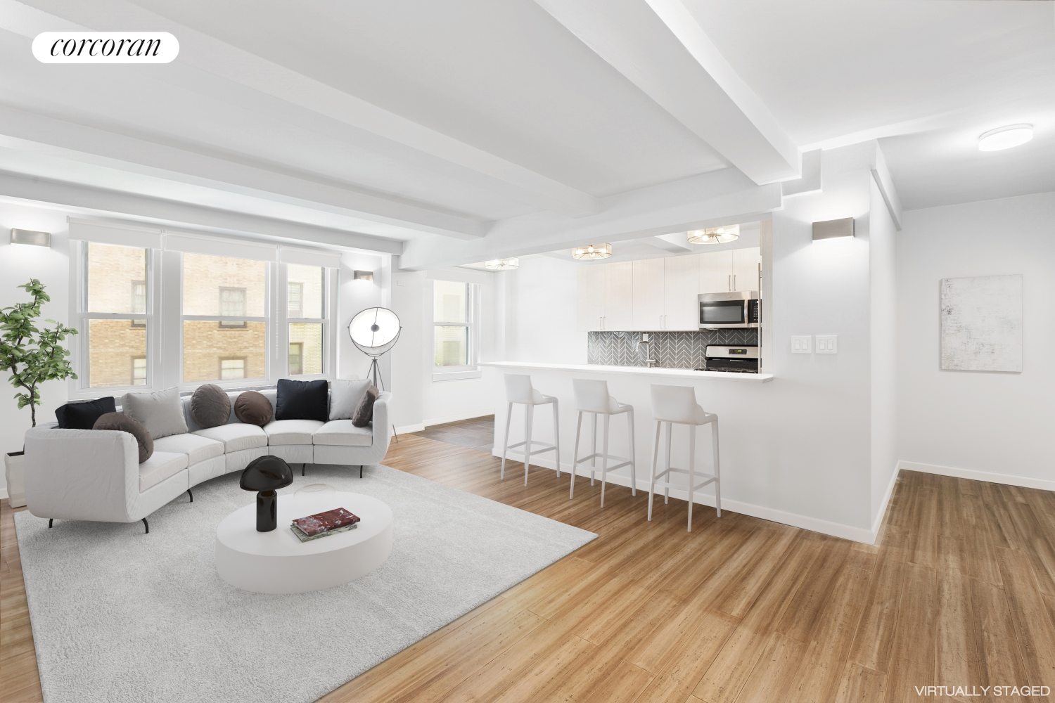 155 East 49th Street is a full-service cooperative with 24-hour doorman, live-in superintendent, attended elevators, and daily mail delivery. Residents also enjoy private storage, bike storage, and a laundry room. Co-purchasing, pied-a-terre, pets, and up to 75% financing are permitted.