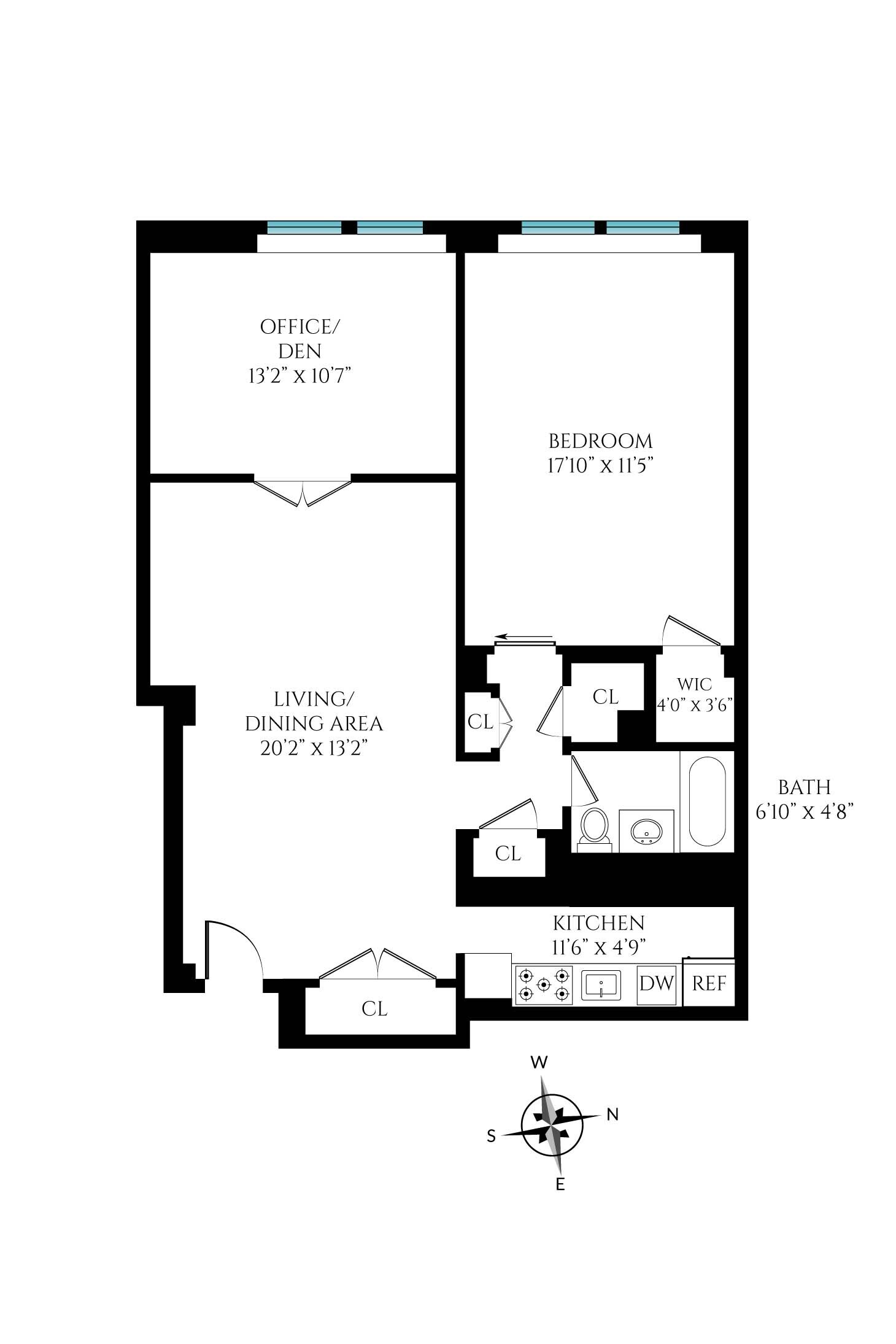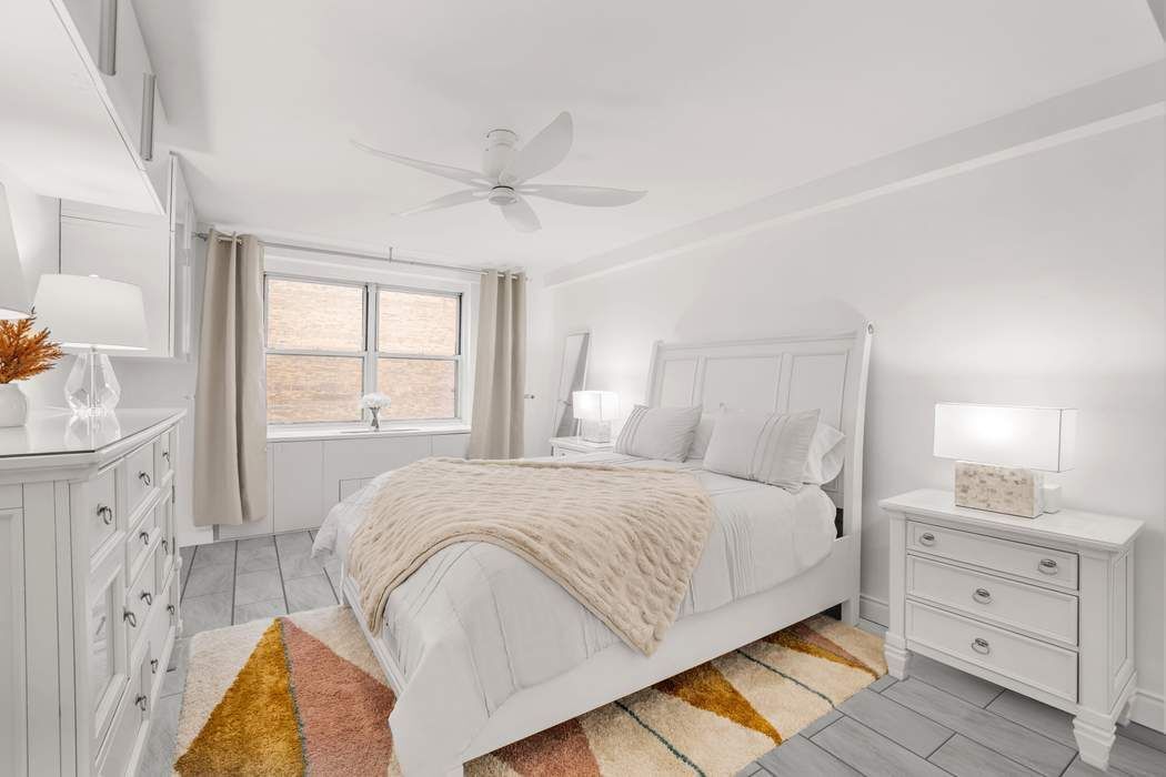 This bright and quiet, oversized junior-four one bedroom is in spotless, recently renovated, and impeccably maintained condition. It is located on one of the topmost floors at the rear of The Wendhorn, a 15-story residential co-op building. This prime placement provides the west-facing unit with eternally open and private exposures that overlook a light well the length of a football field.