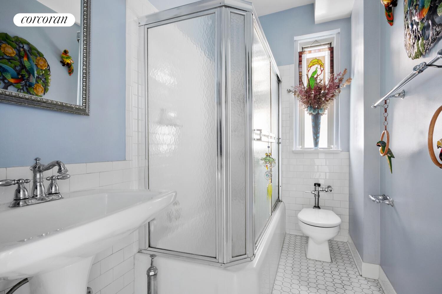 That says it all about this delightful one bedroom unit on beautiful Bennett Avenue! Truly a home, it speaks of comfort, relaxation, and space. If it's size you're looking for, 1D has it. The entry hallway leads to a welcoming gallery/dining area/home office, with built-in, arched illuminated cupboards and shelving, typical of Art Deco style. Nearby is a large, eat-in renovated kitchen with features to inspire your inner chef: granite counters (note plural), glass mosaic back-splash, apron sink. and abundant shaker-style cabinets, including a pantry with pull-out shelving. apron sink; GE and Westinghouse appliances and, of course, a dishwasher. An illuminated Tiffany-style stained-glass wall hanging lends added distinction to the kitchen. The expansive living room accommodates large furniture without crowding. Its windows emit steady northern light. The king-sized bedroom, with north and and east exposures, promises peaceful sleep, and includes a huge closet. The renovated bathroom includes a pedestal sink, subway tiling, and a roomy soaking tub. The apartment is replete with Art Deco details such as graceful curved archways. There are hardwood floors and crown moulding throughout. The attractive flowers and shrubbery in front of the building, plus newly planted trees, make 120 the most attractive building on Bennett Avenue. Cats are welcome but, alas, doggies are not.