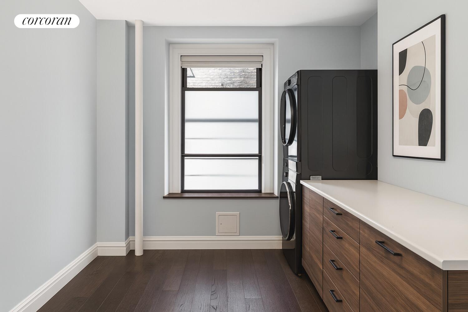 The dining room offers an exceptional scale for entertaining-an uncommon luxury in NYC homes. This versatile space can also function as a bonus room or be converted into a third bedroom to suit your lifestyle needs.