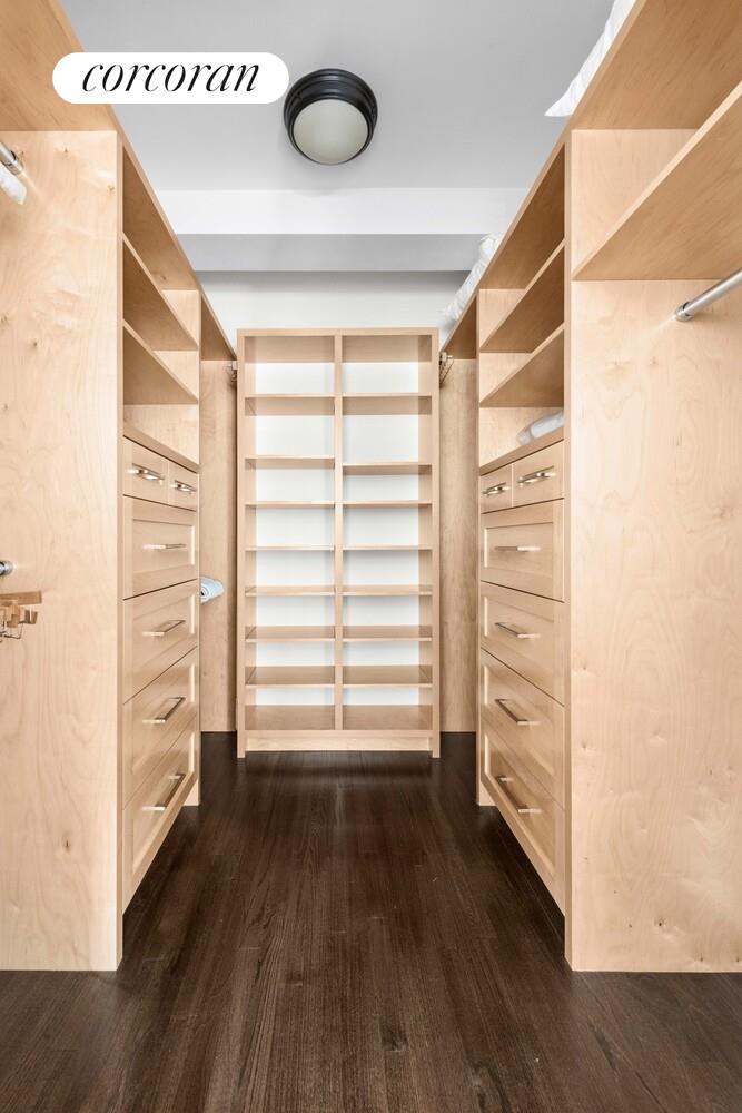 The primary bedroom includes a generous walk-in closet with custom maple shelving, and a serene, windowed en-suite bath clad in imported Italian marble. The second bedroom-with gorgeous pocket doors-features built-ins by Plain English and easily converts to a guest room, office, or den.