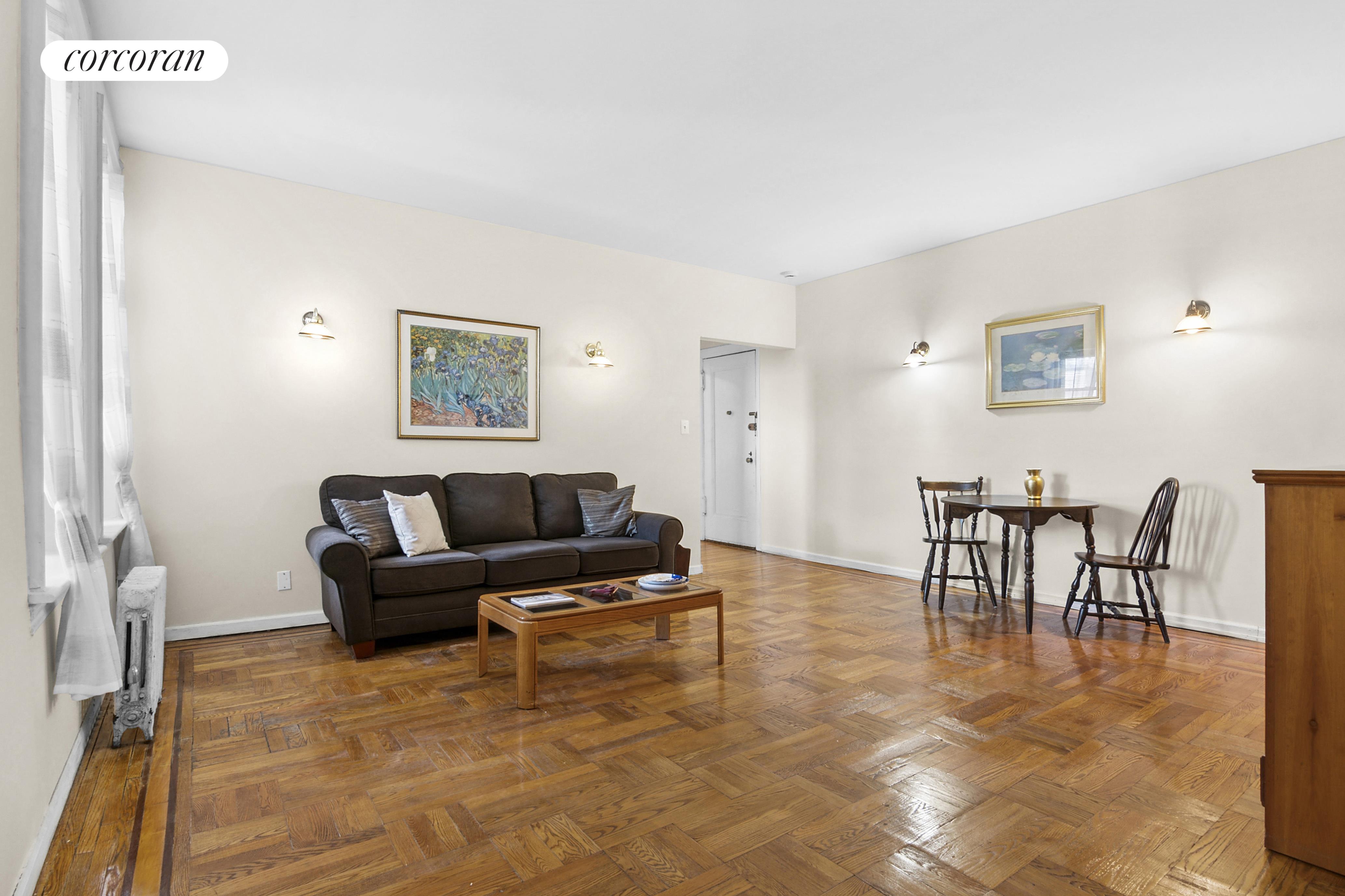 This home has a great layout for comfortable living and entertaining. The open concept floor plan features a spacious living room, dining area and modern kitchen. The well-appointed kitchen is modern and includes white cabinetry, a microwave and dishwasher. Both the kitchen and bathroom have been tastefully updated. The generously proportioned bedroom has plenty of room to fit a king-sized bed, multiple dressers, a home office and so much more. The double-wide and double deep walk-in closets in the bedroom allow for ample storage. There are high ceilings, beautiful parquet floors and plenty of prewar charm throughout. The low monthly maintenance fee of $562 makes this an even sweeter deal. Don't miss the chance to be part of this vibrant community. Schedule a showing today!