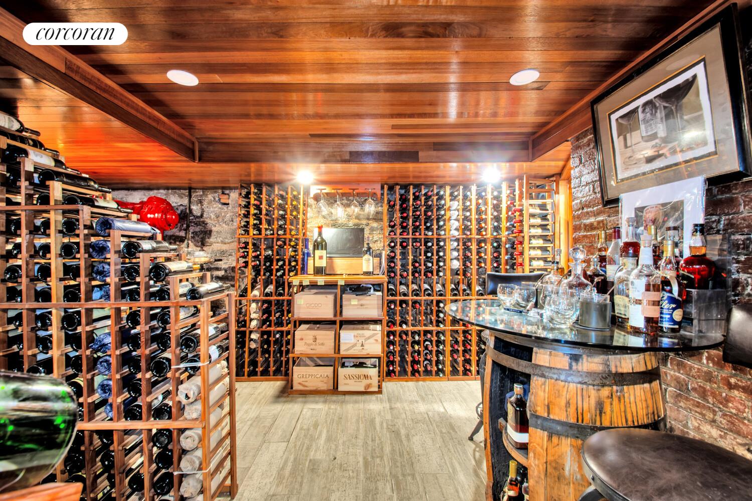 LOWER LEVEL AND ROOFTOP: The basement includes a fully built-out, 1,500-bottle wine cellar with temperature control and a digital catalog, plus a sitting area. Additional storage and mechanical rooms are located just outside the cellar.
