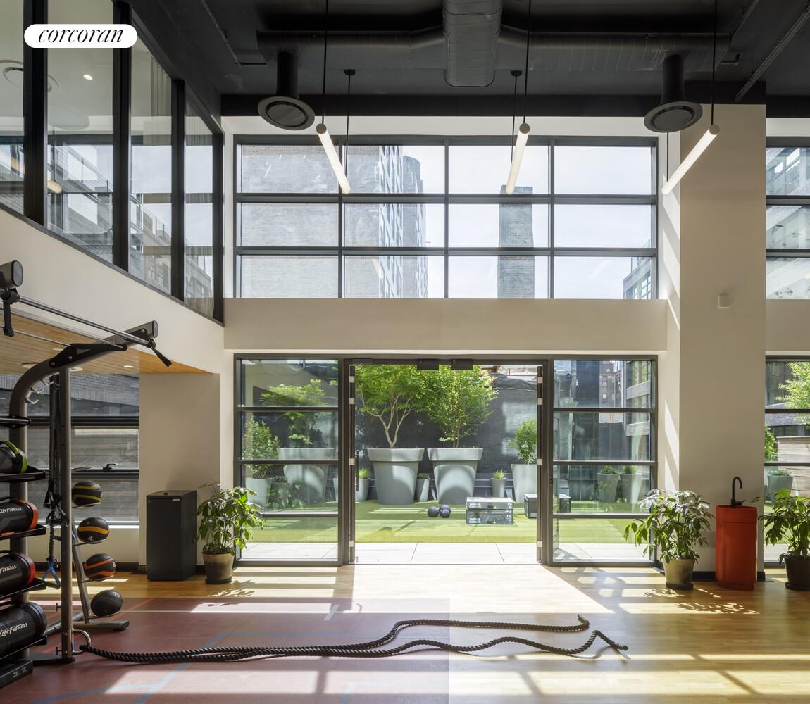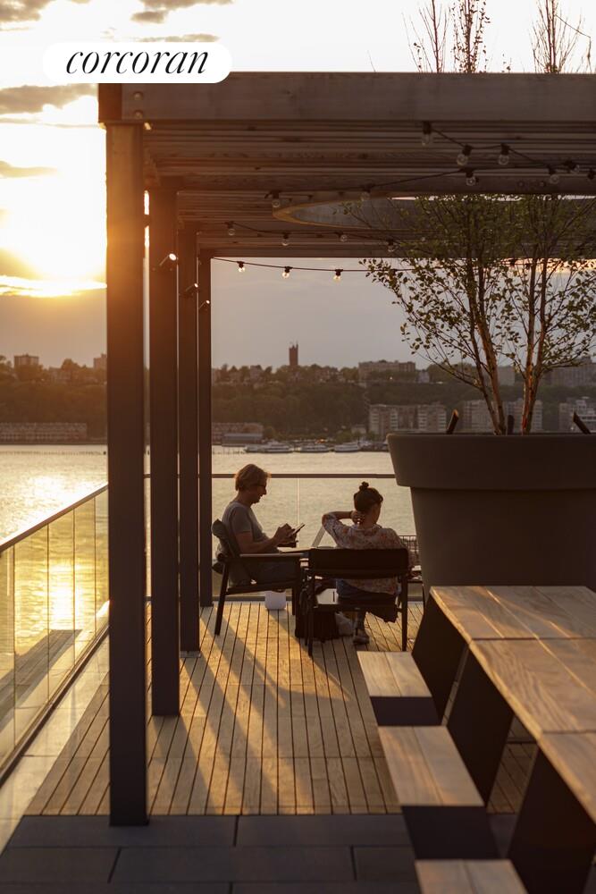 The West Residence Club welcomes you with a beautifully landscaped garden entrance and a 24-hour attended lobby. Residents enjoy over 30,000 square feet of premium amenities at 547 West 47th Street, including a glass-enclosed library with a fireplace, a comfortable lounge, and dedicated co-working spaces. The state-of-the-art indoor/outdoor fitness center-complete with a yoga studio-was curated by The Wright Fit to provide an inspiring environment for wellness. At the rooftop Pool Club, take in sweeping views of the Hudson River and Midtown skyline from the swimming pool, sundeck, outdoor kitchens, dining areas, and lounge spaces.