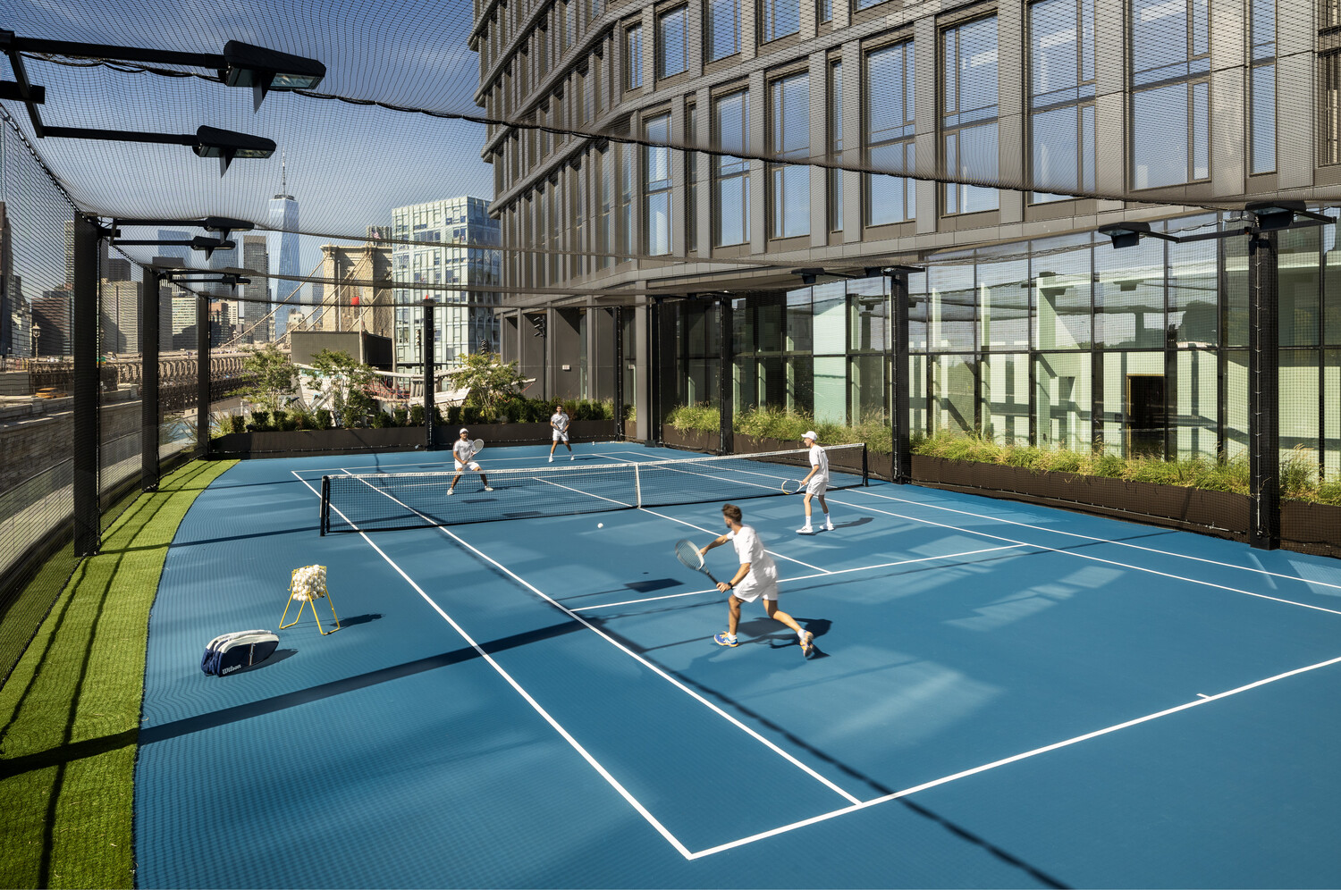 The Garden level features our ground floor amenities. Through a private entry court, a contemporary porte coch re welcomes you to a sheltered vestibule, and to the building's triple-height lobby. The fully serviced lobby features a sculpture by Jacob Hashimoto and floor-to-ceiling window walls. Adjoining the lobby is the private garden lounge overlooking the MPFP-landscaped Gair Gardens. Located in the building's lower level, The Club is all about fun and fitness, complete with a game lounge, bar, two-lane bowling alley, state-of-the-art fitness center, spin studio, boxing gym, private locker rooms and maritime-themed kid's playroom. The Bridge level of Olympia, on the 10th floor, offers a variety of indoor & outdoor amenities dedicated to recreation and relaxation. Features include a 60" indoor lap pool, wellness amenities, juice bar, a 58" outdoor pool and hot tub, cabanas, barbecue areas, children's ship-inspired playground & waterpark, and a full-size tennis court overlooking the Brooklyn Bridge, lower Manhattan and beyond. Additional services include private on-site parking available for rent or purchase, 24-hour doorman and concierge, package room with refrigerated storage, bicycle storage and private residential storage available for purchase.