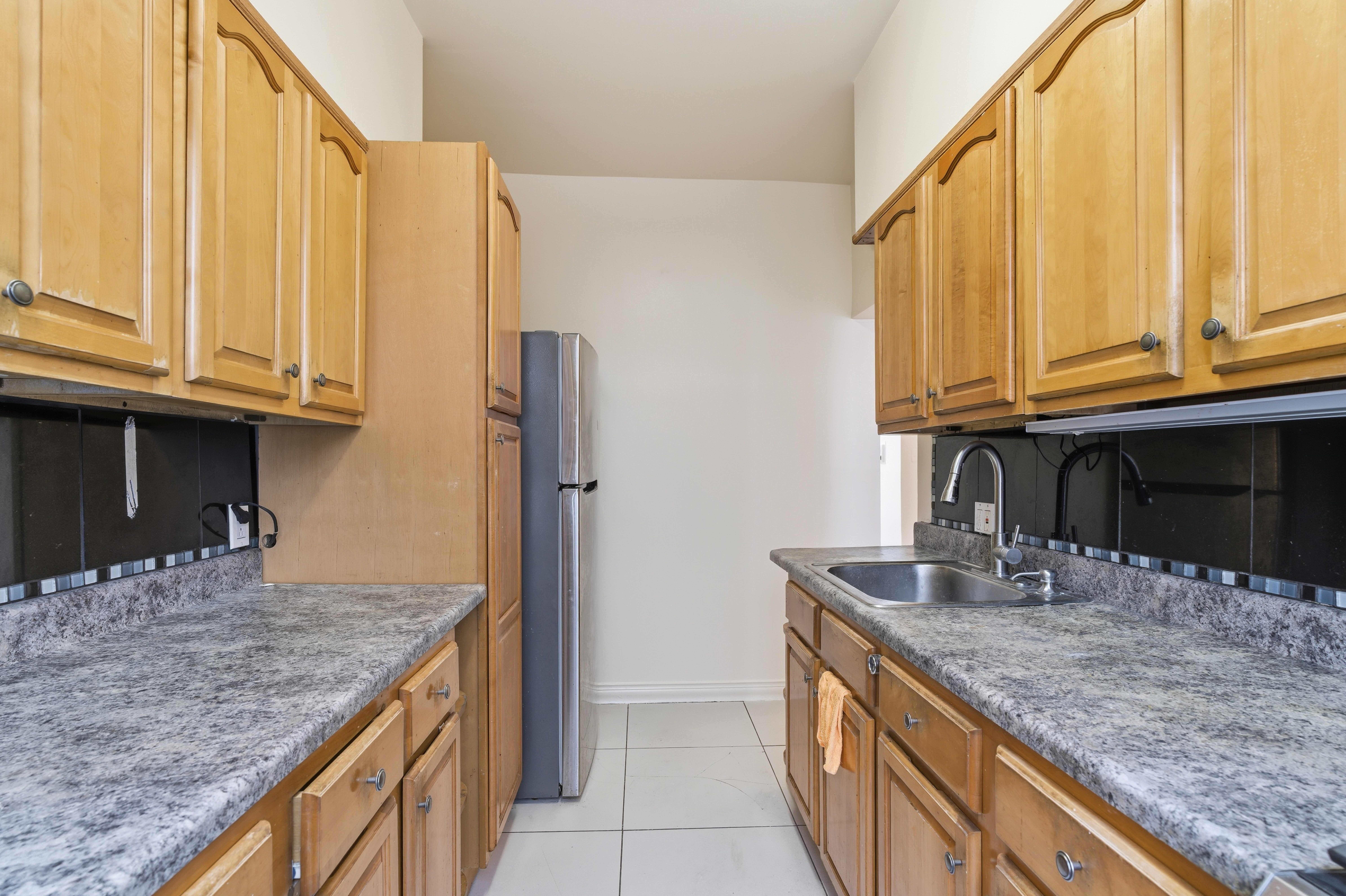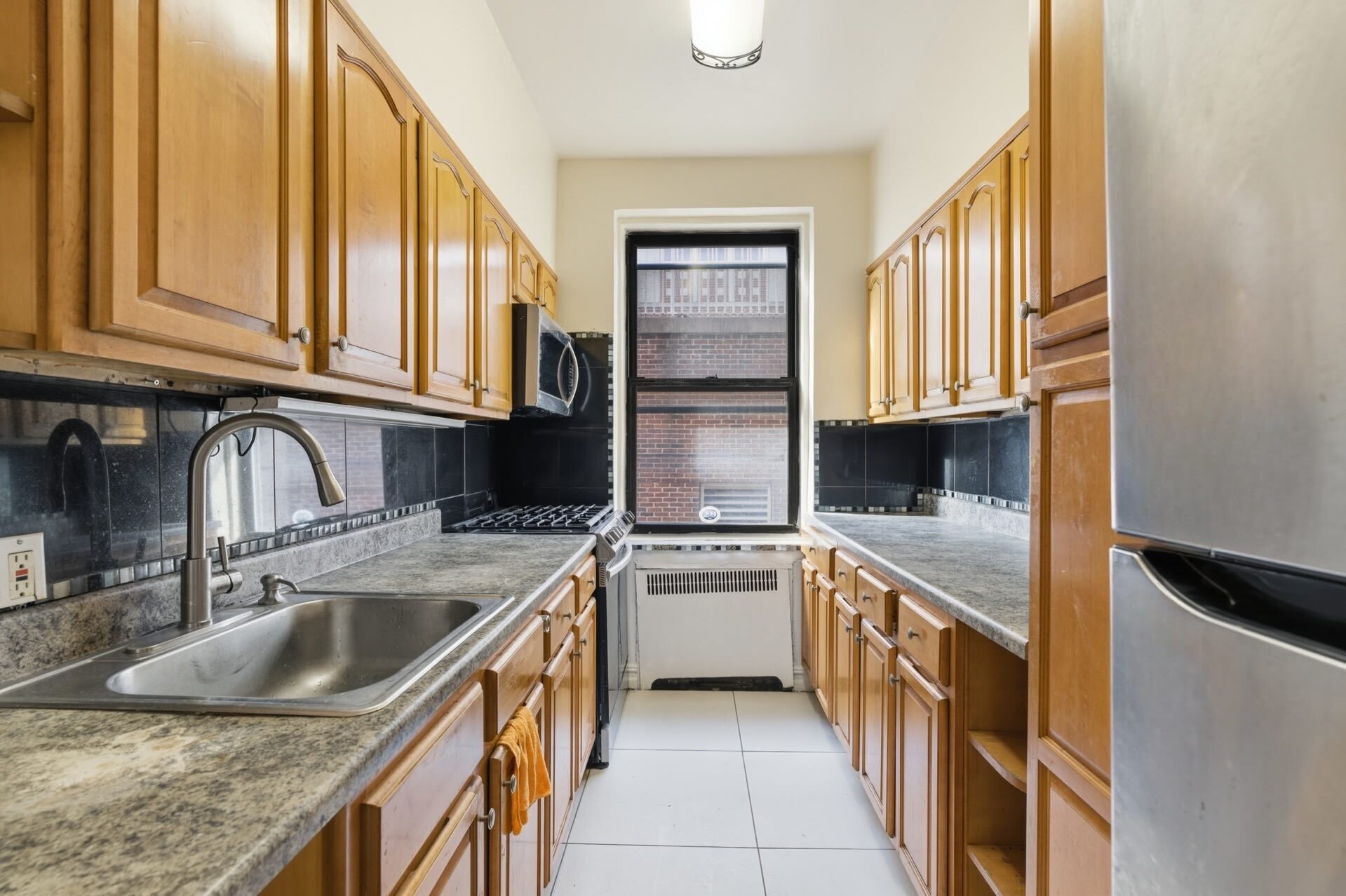 The windowed galley kitchen features countertops and generous cabinet storage. The bathroom includes a window, updated vanity, and a sliding-glass tub/shower combo. While move-in ready, the apartment offers strong potential for light cosmetic upgrades to suit your personal style.
