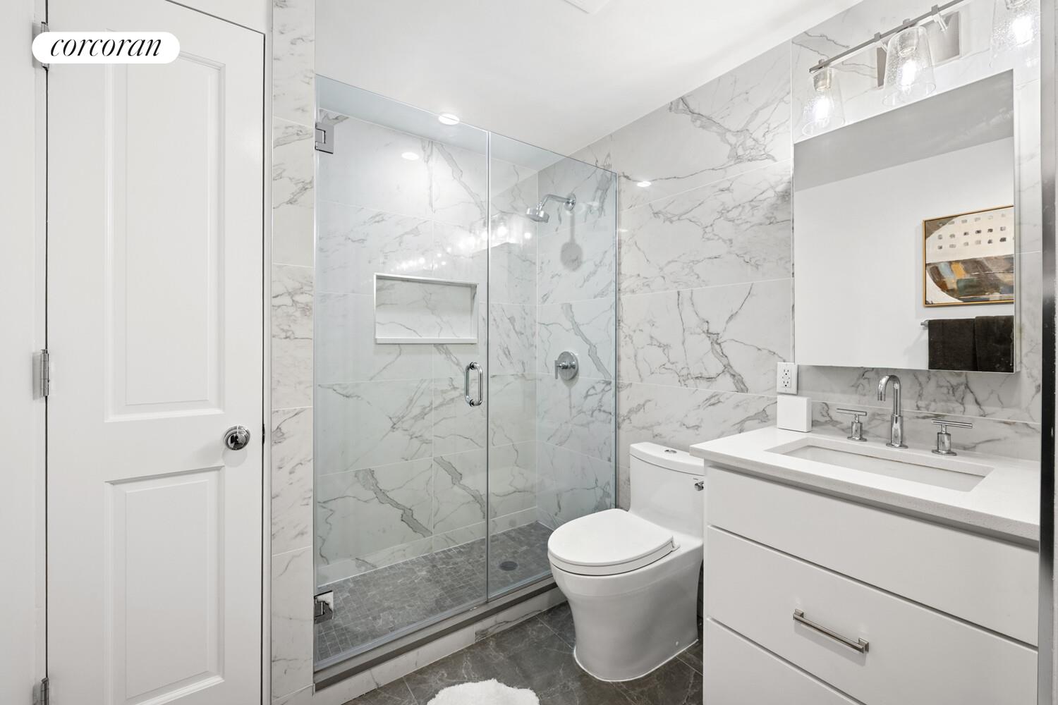 Welcome to Residence One at 569 St. Marks Avenue-a stunning 2-bedroom, 2-bathroom home where soaring ceilings and dramatic double-height windows bathe the space in sunlight. Thoughtful touches like remote-controlled blinds and an in-unit washer/dryer elevate everyday comfort, while an expansive 800+ square foot private backyard transforms city living into your own personal retreat. Completely renovated and move-in ready, this is Brooklyn living at its brightest.