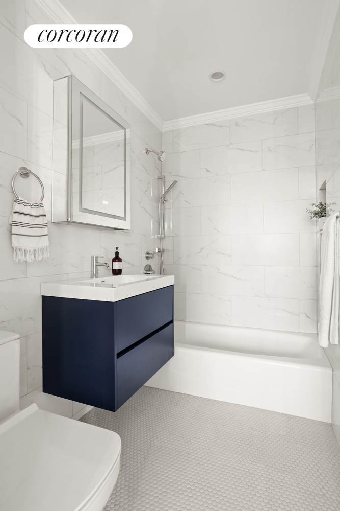 The floor above the parlor is the primary suite level with customized closets and a large, luxurious ensuite bath with a dual shower jet system, soaking tub, radiant heated floors, dual sinks and vanities. The fourth floor has two bedrooms, one with an en-suite bath and a second full bathroom. The top level studio area has a half bath and access to the front and back roof space.
