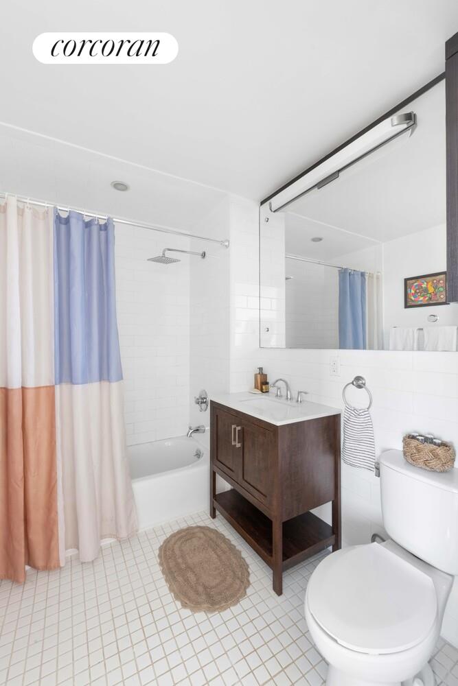Through the front door, a sun-drenched one bedroom greets you with open concept living, high ceilings, recessed lighting, central air and heat, dining area and stunning floor to ceiling windows with open views of Brooklyn's sky and neighboring buildings.