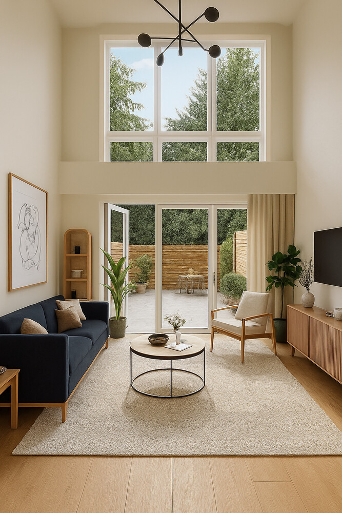 New Greenpoint Condo Building - Residence 1A is a spacious three-bedroom, three and a half bath condo with double-height living room and incredible private outdoor space with a grill.
