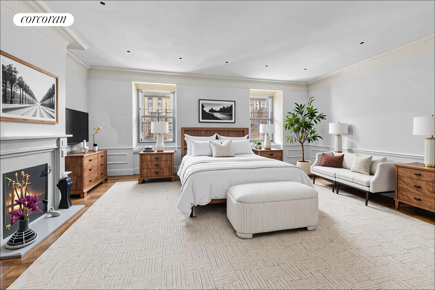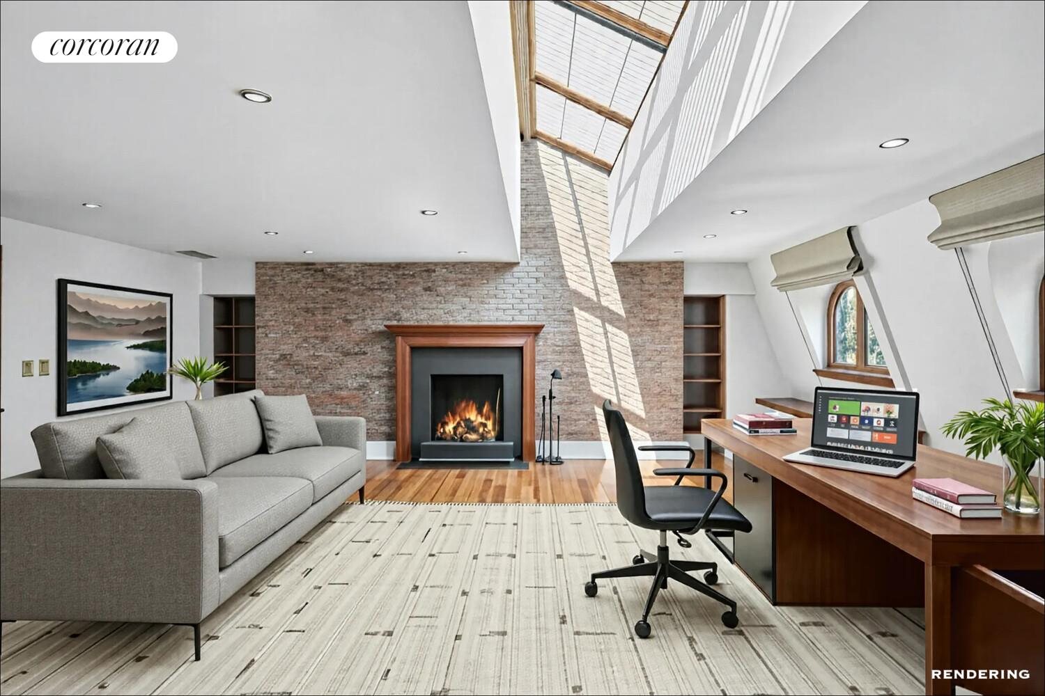At the top of the residence, the Private Level includes a study and guest room/office with wide-plank pine floors and two fireplaces. Skylights and a private terrace off the guest room make this an intimate and tranquil retreat, as perfect as it is distinct from the ornate character of the six floors below.