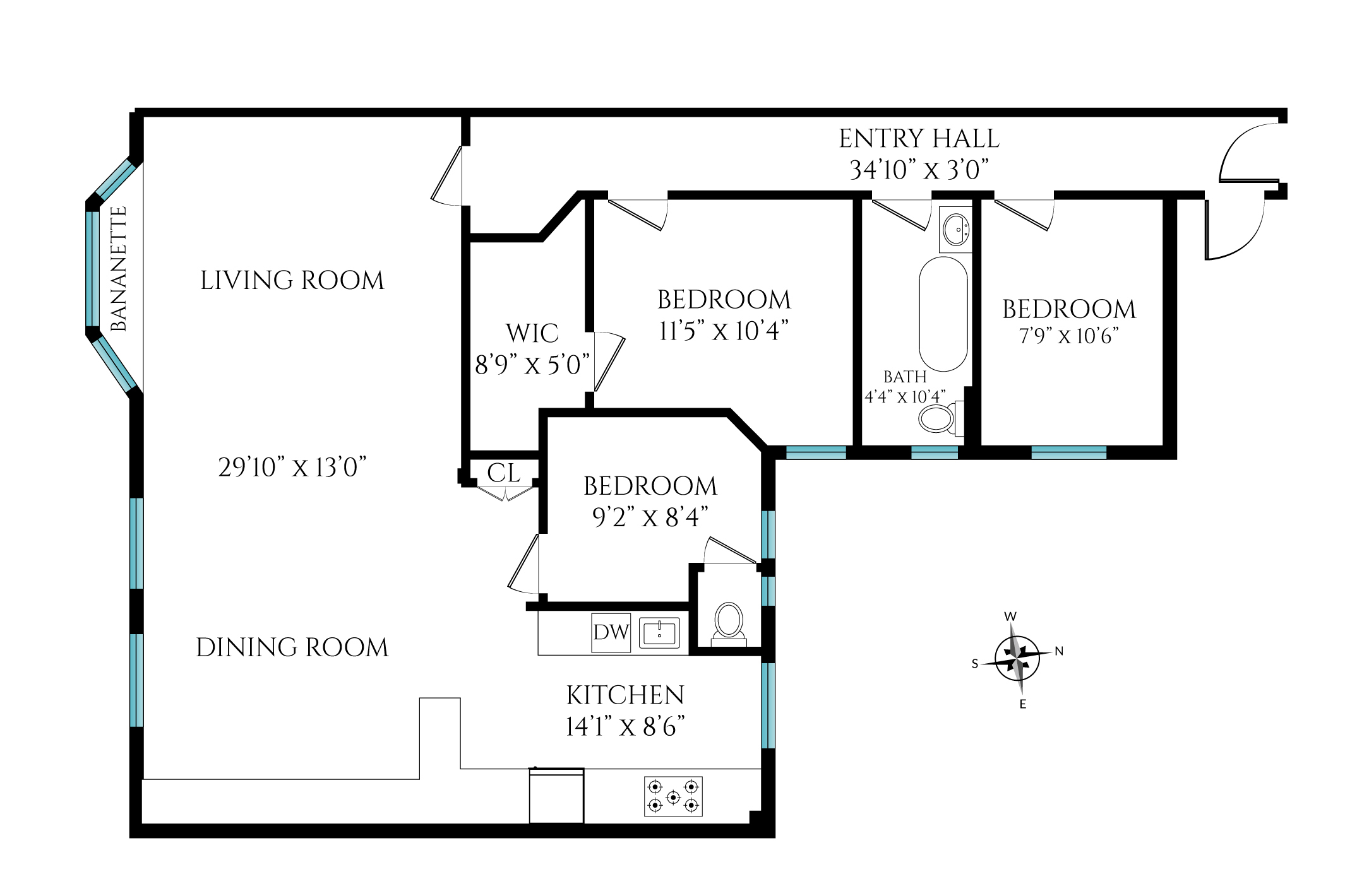 Not often does an apartment with this much living space and natural light come along. Nestled in Morningside Heights, this beautifully renovated 3-bedroom, 1.5-bath home is designed to enhance both comfort and style. With southern-facing bay windows offering serene tree-lined views, the almost 10-foot ceilings and expansive living and dining areas create an exceptional open-concept feel. The apartment retains its original charm, with hardwood floors and exquisite prewar details throughout, complemented by oversized windows in every room. The chef’s kitchen is a highlight, featuring one-of-a-kind stone and marble countertops, restored original cabinetry, and brand-new Bosch appliances, including a dishwasher and stove. Thoughtful design touches are evident in the custom built-ins, which include a spacious pantry in the kitchen, a wall of cabinets in the dining room, and even a hidden office nook for added convenience. All three bedrooms are interior-facing but benefit from abundant natural light. The primary bedroom easily fits a king size bed and includes a large, organized walk-in closet. The second and third bedrooms are spacious enough for full-size beds, with the third bedroom currently being used as an office/art studio, complete with a small half bath. The main bathroom blends the charm of the old with the new: updated with clean white tile, it also retains the beauty of an original clawfoot tub. The Markenfield, a historic elevator prewar coop built in 1906, is located on the coveted West 111th Street, where there is no through traffic and an entrance to Riverside Park is just outside your door. The 1 train is just a block away, making transportation a breeze. This well-maintained building offers a live-in super, bike storage, laundry room, and private storage units. The stunning lobby and hallways have recently undergone a complete renovation, and all apartments will be receiving new windows—fully paid for with no assessments. The building has no flip tax, adding even more value to this already incredible home. Living here means enjoying the best of both worlds: the tranquility of nature with easy access to vibrant city life. Explore nearby restaurants and cafes, stroll through the stunning gardens of St. John the Divine Cathedral, bike along the Hudson River path, or picnic in the park just outside your door. Pets are welcome.