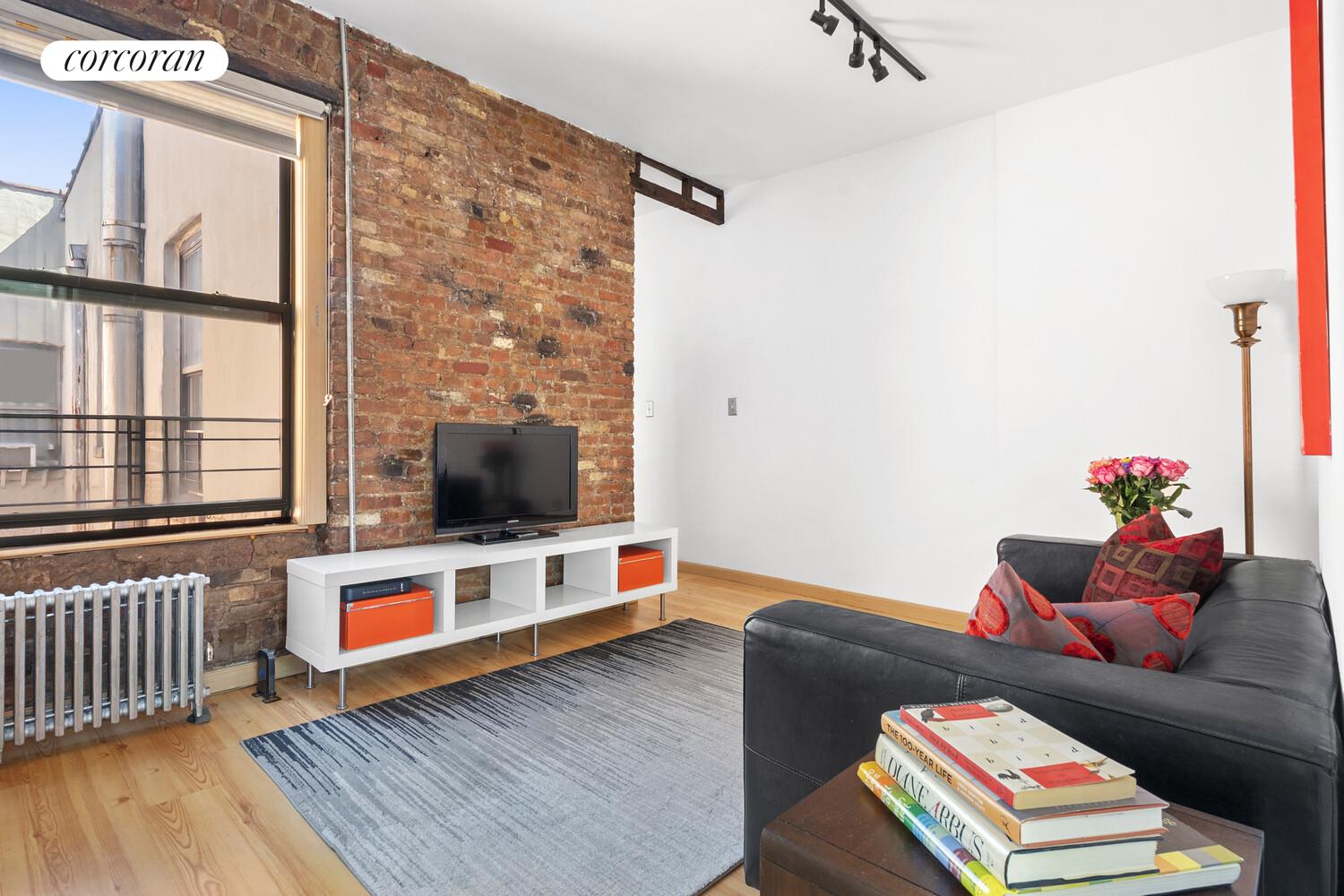 Welcome to this beautifully designed and move-in ready East Village residence, offering a versatile 2-bedroom layout and exceptional value with remarkably low monthly costs of $425. Step into a spacious, sun-filled living area bathed in southern light throughout the day. Just off the living room, a second bedroom with french doors provides the perfect space for guests, a nursery, or a bright home office. The windowed kitchen balances form and function, offering generous counter space and ample cabinetry-ideal for everyday cooking. Retreat to the serene primary bedroom, which features two oversized windows, a large closet, and enough room to accommodate a full furniture suite. The windowed bathroom exudes calm with its neutral palette, warm stone tile, and updated fixtures. Restored exposed brick walls and oak flooring throughout. WASHER DRYER permitted.