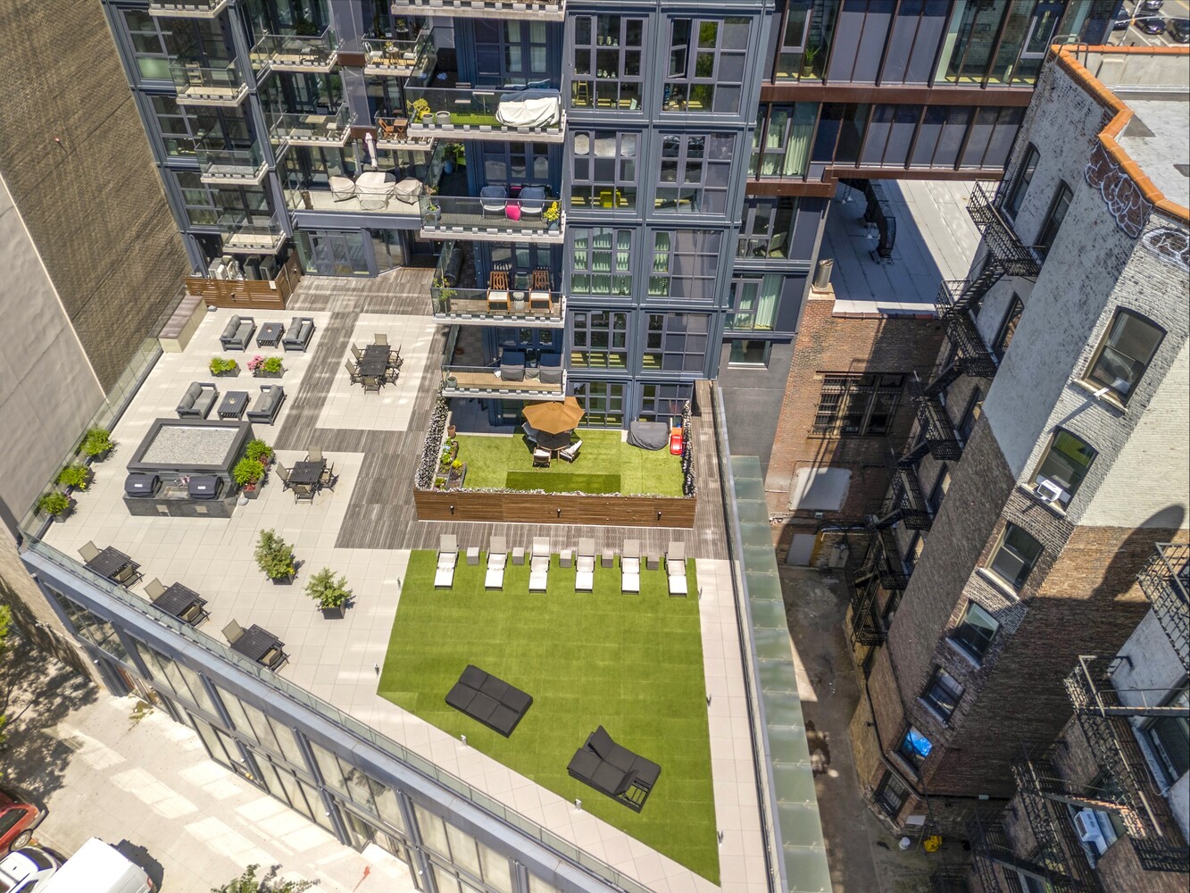 Eleven Hancock designed by Isaac & Stern Architects offers over 6,000 sq ft of luxury amenities including a rooftop with BBQs, resident lounge with 3,500 sq ft terrace, fitness center, children's playroom, pet spa, bike storage, and a 24/7 attended lobby with private garden entry.