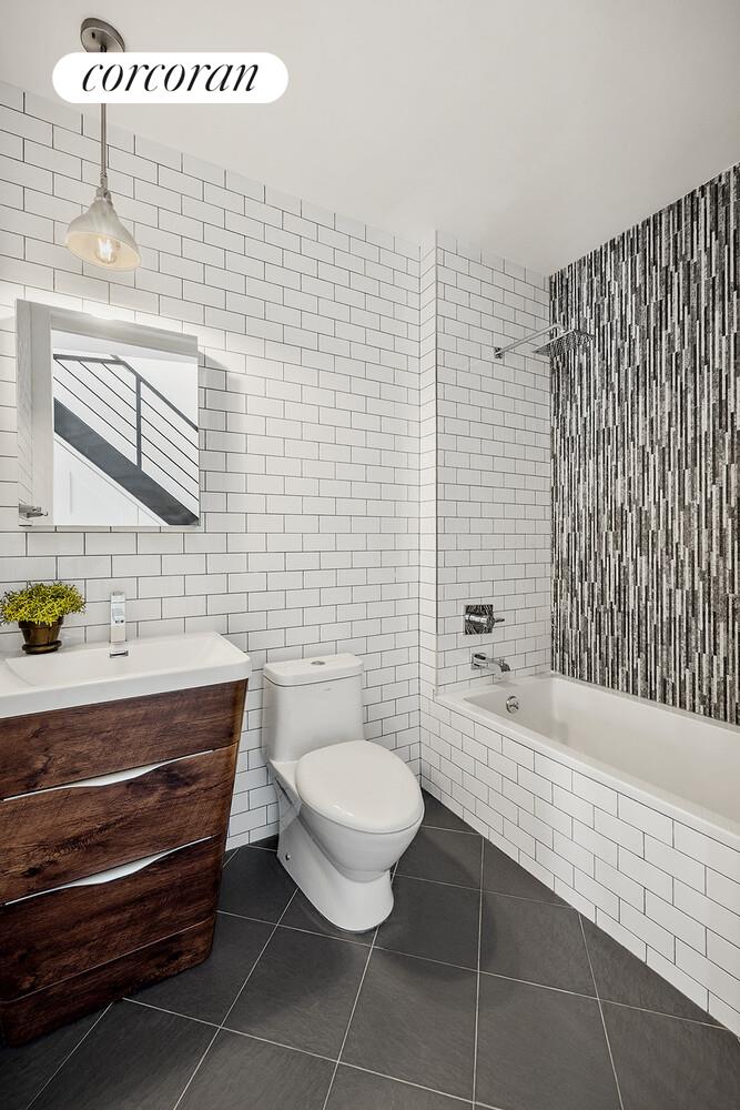 Two spacious bedrooms on this level-one with a  spa-inspired en-suite bath-are perfect as a  guest bedroom or an inspiring work-from-home space, offering versatility for modern living. A second full bath with a soaking tub and an in-unit washer/dryer complete this floor.