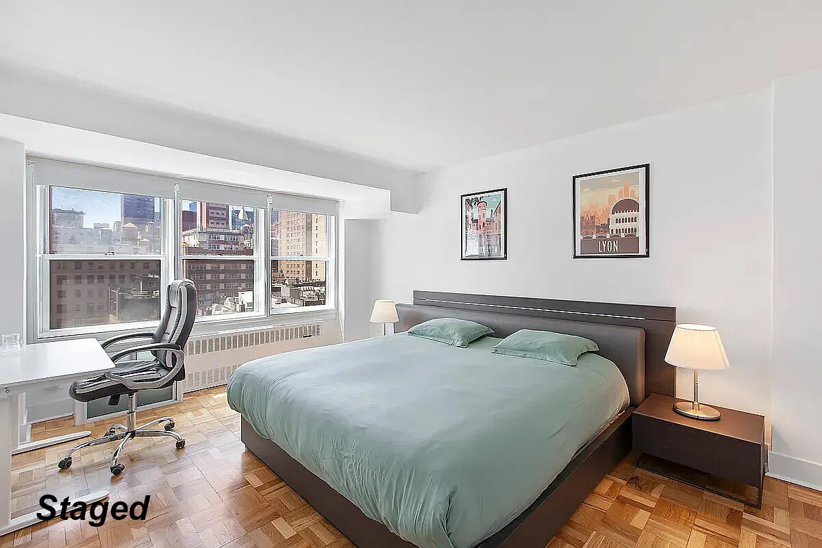 Sun-drenched high-floor convertible two-bedroom fully furnished in the heart of Murray Hill. Residence 11K boasts a beautiful open kitchen, an oversized living room spacious enough for a full dining area, and generous closet space throughout. The recently renovated bathroom features elegant marble finishes, adding a touch of luxury. Enjoy bright Southern exposures with iconic views of the Empire State Building.