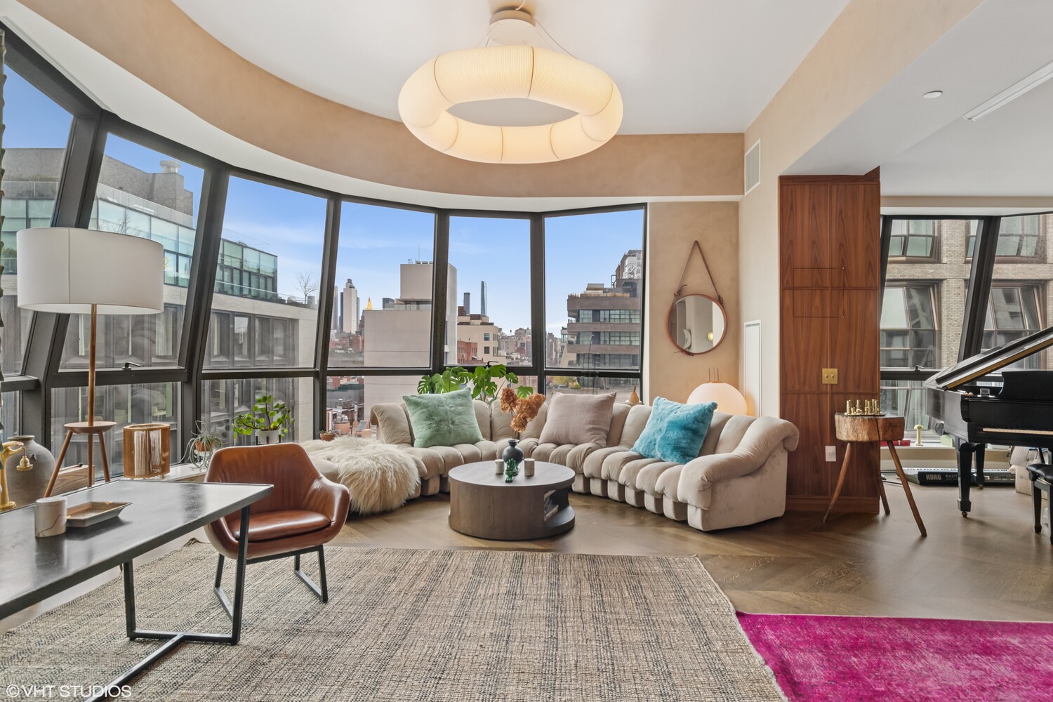 Residents enjoy white-glove service and over 14,000 sq ft of amenities, including a 75-foot pool, infrared sauna, hot and cold plunges, Equinox-curated health club, meditation room overlooking the High Line, co-working spaces, and a rooftop terrace with panoramic views.