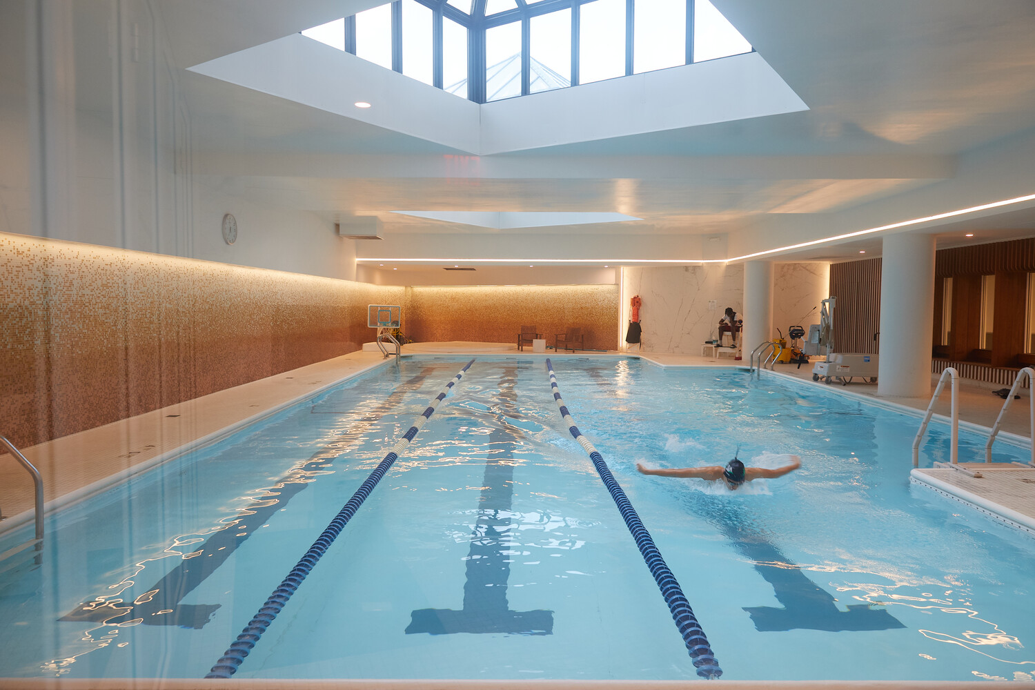 • Amenities over three levels, including a state-of-the-art health club, indoor swimming pool, sauna, steam room, and roof deck with panoramic city views