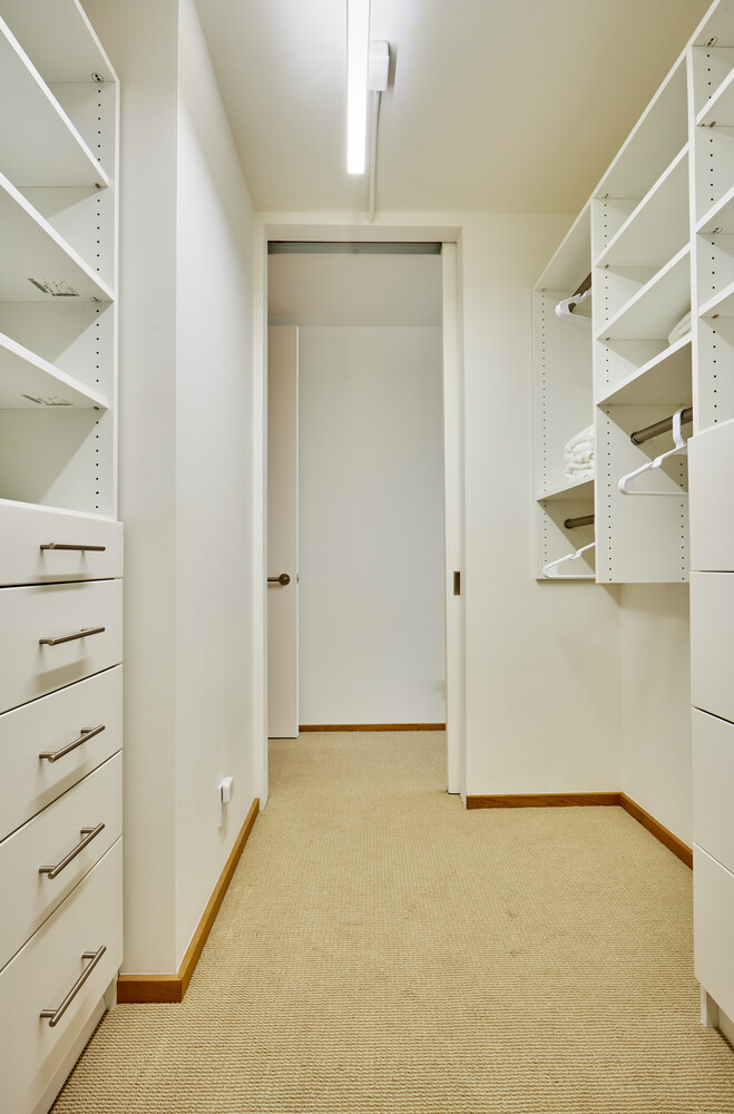• Custom built-ins and an oversized walk-in closet offering refined organization