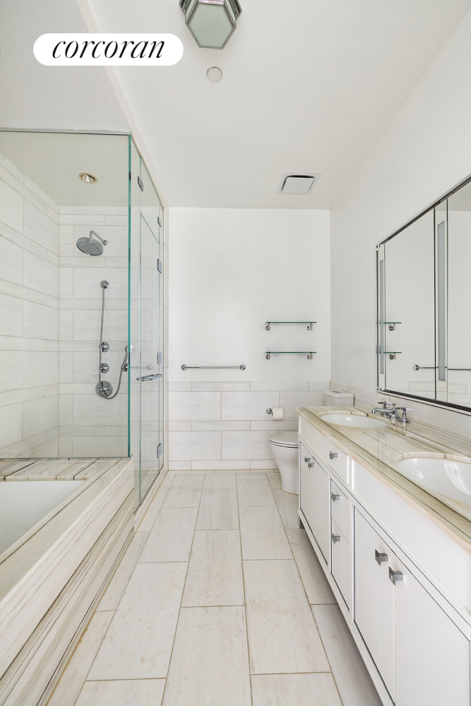 Masterfully designed by world renowned architect Robert A. M. Stern, 30 Park Place, Four Seasons Private Residences offers a boutique collection of only 157 luxury condominiums, and an unparalleled, full- service luxury life style. As one of the tallest residential towers in all of downtown Manhattan, 30 Park Place offers some of the finest views in all of New York City. Designed for the most discerning buyer who demands perfection, this home offers floor-to-ceiling windows, almost 11 foot ceilings, spacious bedrooms, and en-suite bespoke baths. The apartment has been beautifully upgraded and customized with stained floors pencil trim decorative molding crown molding and raised ceiling heights and powder room and hallways to second bedroom. The corner master bedroom suite has is very private and has two walk in closets. The superbly well-proportioned second bedroom has wonderful eastern exposure. . This coveted property offers superb finishes, including inlaid pristine blonde solid oak wood flooring with herringbone pattern in all formal rooms. The private kitchen is located just off the living and dining room area and its custom details include Bilotta rift-cut oak kitchen cabinetry and Gaggenau appliances. The building is extremely thoughtful in its approach to services, and as such the 38th floor is devoted entirely to private residential amenities including a fitness and yoga center, a private dining room, a conservatory and lounge with access to loggias, a Roto-designed playroom, and a screening room. Developed by visionary Silverstein Properties, the residences of 30 Park Place may enjoy access to the Four Seasons Hotel amenities located on the lower levels. These include spa and salon facilities, a 75" swimming pool, an attended parking garage, a restaurant, bar, lounge, ballroom, meeting rooms, and a comprehensive suite of a la carte services. 30-Park Place also is located next to all major transportation, and some of the best fine dining experiences in Tribeca.