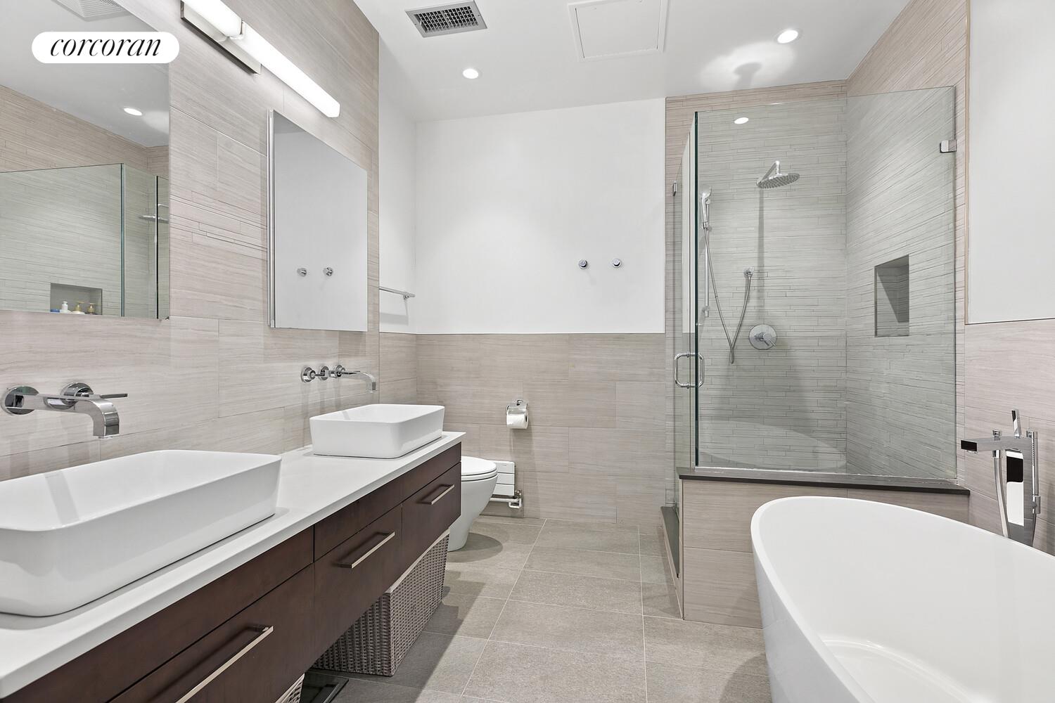 -Renovated spa-like ensuite bath with heated floors, -Victoria + Albert soaking tub, and rain shower