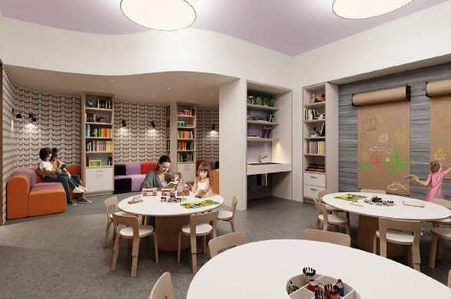 Screening room, game lounge, and kids studio