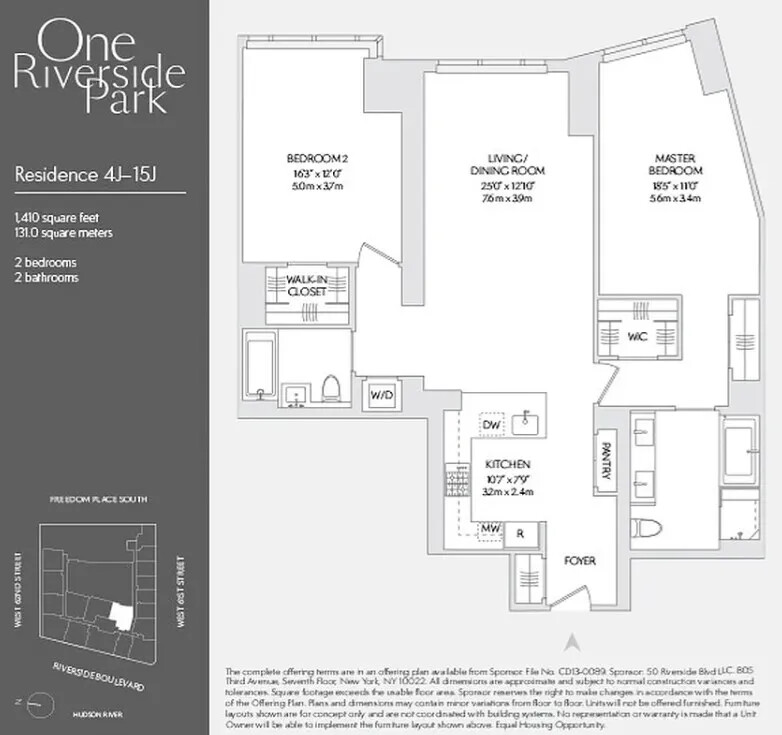 The luxurious One Riverside Park offers a 24-hour doorman and concierge service, along with over 50,000 square feet of amenities and an onsite parking garage. Wright Fit athletic club features a 75-foot swimming pool, a rock-climbing wall, basketball, squash courts, a two-lane bowling alley, a golf simulator, Pilates and dance studio, and locker rooms with saunas. Additional amenities include an indoor playroom, an entertainment room with a catering kitchen, a private screening room, resident's lounge and game room, and a beautifully landscaped garden courtyard. Just outside, One Riverside Park offers 21 acres of open space, sports fields, playgrounds, plazas, piers, and gardens.
