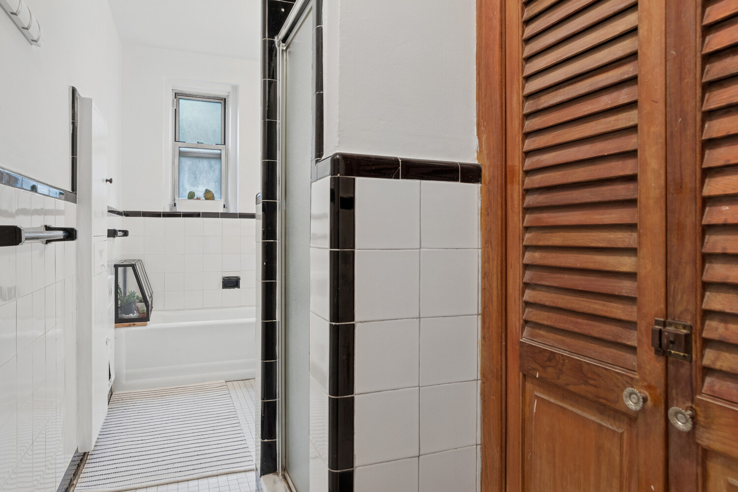 Spread your wings in this massive one-bedroom home, with its thoughtful layout and good flow. Generous pre-war proportions throughout. The large entry foyer has a charming built-in bookshelf and a closet; it opens to both the living room and the separate dining area. The windowed galley kitchen has ample counter space. The bedroom and bathroom are comfortably separated from the living area by an L-shaped hallway. The large bedroom is peaceful, with two windows open to quiet, tree-lined side streets. The bathroom is a classic -- with original tiles, a cast-iron tub and separate shower, and a built-in linen closet. This is where you want to have your spa day! The oak wood floors are in pristine condition; the walls are in perfect shape.
