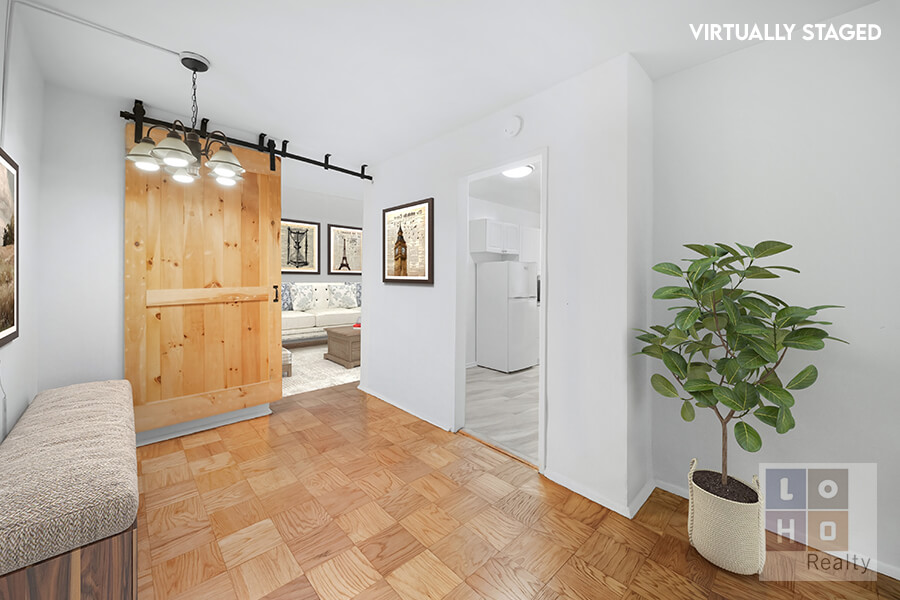 **High-Floor 1-Bedroom with Northern Views from Every Room!** This spacious and flexible 1-Bedroom (Jr. 2) home in the highly desirable Seward Park Co-op offers an abundance of natural light and stunning northern exposures from every room. The oversized living room is perfect for entertaining and easily accommodates a formal dining area. Adjacent to the kitchen, a generous foyer provides versatility as a dining room, home office, or cozy sitting area. A beautifully crafted wooden sliding door has been installed, allowing you to close off the living room and create a true second bedroom if desired. The windowed kitchen features brand-new flooring, ample cabinet and counter space, and a charming breakfast nook. The king-sized primary bedroom includes a walk-in closet and sits next to a full bathroom with a soaking tub. With three additional large closets and refinished hardwood parquet flooring throughout, storage and style are plentiful. Prefer an open-concept layout? The kitchen walls can be fully or partially removed to create a more expansive, modern living space! Co-op amenities (additional fees & wait lists may apply) include 2 private parks complete with playgrounds & water park, a fully equipped fitness center, indoor children’s playroom, 24/7 lobby attendant, 24/7 modern laundry room, on-site maintenance, community garden, composting, bike storage, shared workspace, and community room complete with modern kitchen for events. Short walk to Trader Joes, Target, Regal Cinemas and the Essex Market! Short walk to Chinatown; Little Italy and cultural venues. Subleasing after 2 years of ownership. Shareholder required continuing to pay base maintenance in addition to a sublet fee. Dogs allowed subject to registration/approval. Washers / dryers allowed in-unit pending co-op approval.