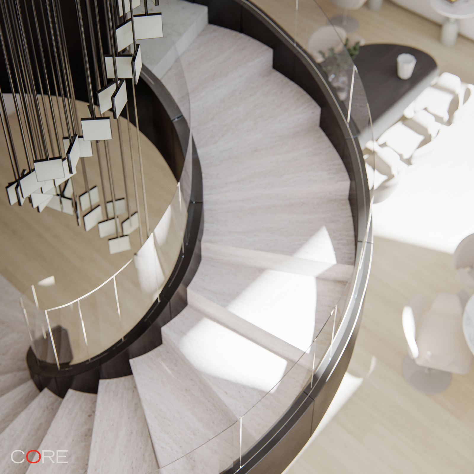The double-height lobby welcomes you into a world of elegance, leading to the resident lounge and a beautifully landscaped courtyard with outdoor seating. Here, residents can socialize, relax, or entertain in style, both indoors and outdoors. Descend the spiral staircase to find the state-of-the-art fitness center with cardio machines, free weights, and a private yoga studio. The wellness spa is adjacent to the fitness center, complete with a steam room and sauna, featuring slip-free teak flooring, a cool-off shower, and towel service. Additionally, residents can enjoy a landscaped rooftop terrace equipped with barbecues, lounge chairs, and dining areas.