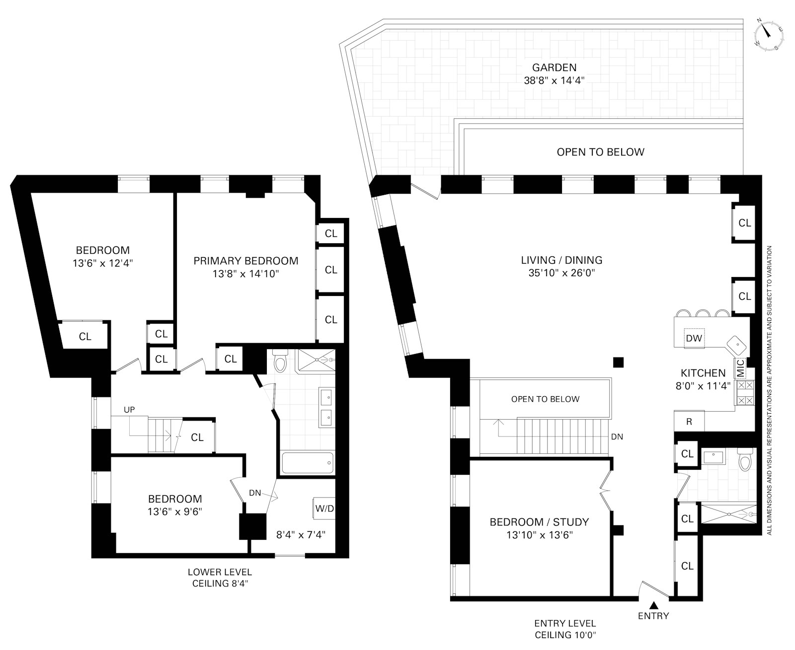2062 sf duplex. 10ft +/- ceiling height. Lower level 8ft+ ceilings. 15 oversized windows surround this unit. 10 upstairs and 5 downstairs. Currently lived in as a 3 bdrm with a 178sf den. 2 full baths. W/D in unit. Pets allowed.