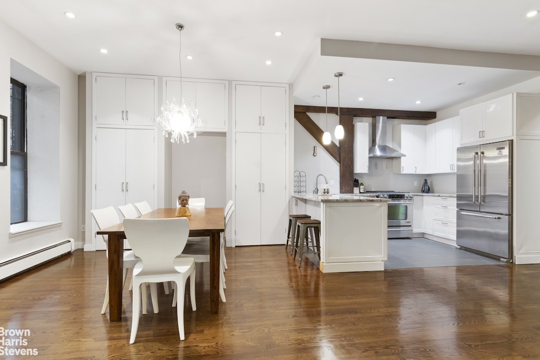 Stepping into this loft is like stepping into your own private brownstone. Enjoy the luxurious comfort of space and quiet that surrounds you in this generous loft. Wood floors and beams and exposed brick provide the backdrop of a classic loft building. The modern open kitchen has ease of space whether it's just you or you with all your friends.