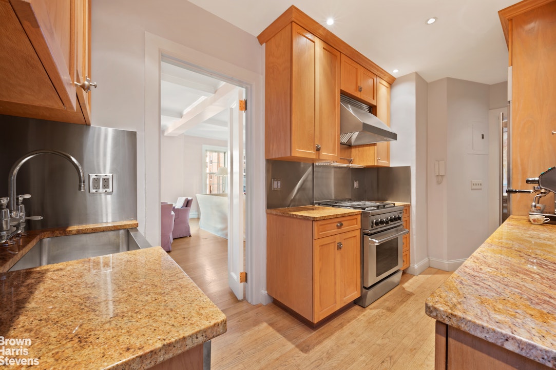 The large walk-through, windowed kitchen, featuring ingress and egress on both sides, has custom cabinetry, granite countertops, top of the line appliances-including a DCS vented 5 burner stove, Miele dishwasher, and vented Miele washer & dryer.