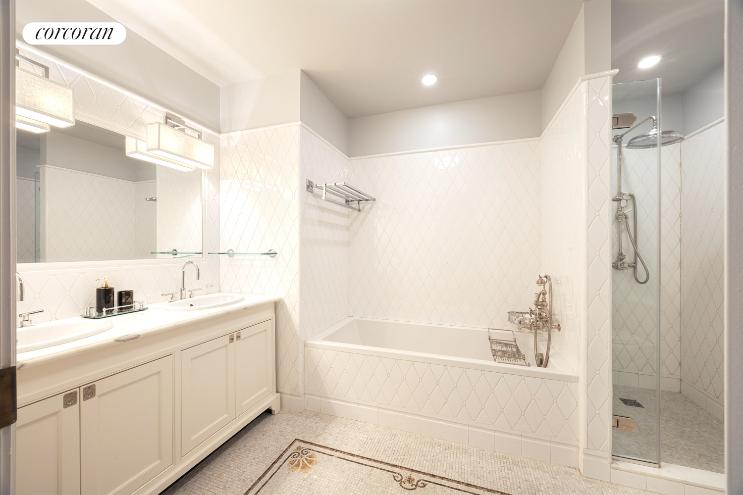 Welcome to Residence 1707 at 1 Central Park South, an exquisite three-bedroom, three-and-a-half-bathroom home located within the iconic Plaza Residences. This luxurious apartment boasts breathtaking views of Central Park and offers an exceptional layout. Each bedroom features its own en suite bathroom adorned with classic mosaic tiles inspired by the timeless elegance of The Plaza's historic lobbies. The generously proportioned primary suite is thoughtfully separated from the other bedrooms, ensuring privacy and offering abundant closet space. The kitchen is a chef's dream, outfitted with Viking and Miele appliances, striking white Calacatta mosaic marble backsplashes, and Nero Marquina stone countertops. Additional highlights include rich hardwood floors, multiple heating and air conditioning zones, and a seamless sound system throughout the home.
