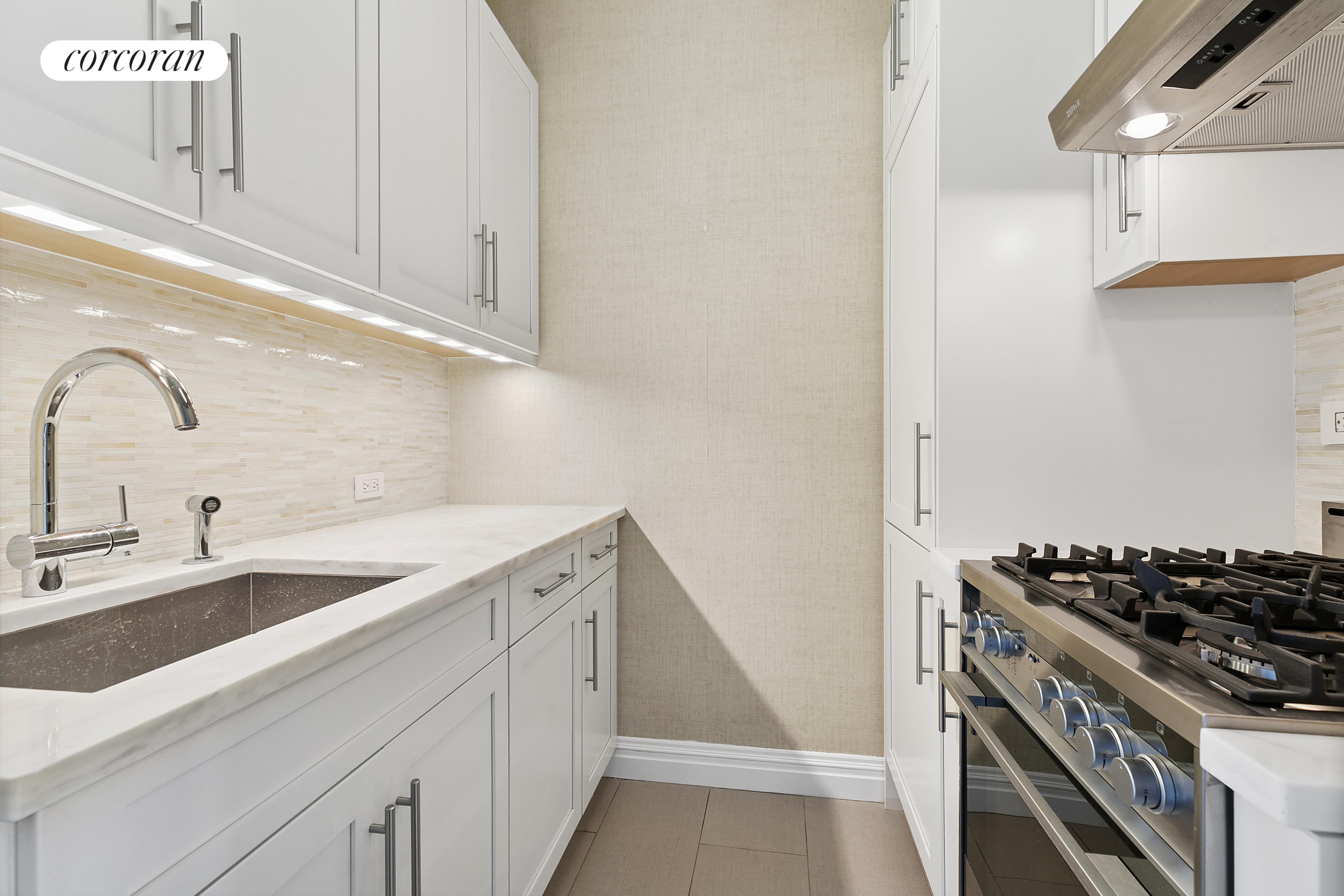 The kitchen is tastefully appointed with granite countertops and state-of-the-art stainless steel appliances. Both the living room and bedroom provide stunning views of Greenwich Village to the North and East through oversized, double-paned windows, complete with custom motorized shades. A private storage unit in the basement is included with the apartment.