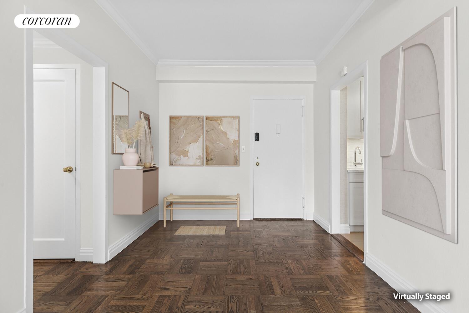 Welcome to a grand Fifth Avenue luxury residence offering picturesque views of Greenwich Village's charming side streets. This exquisite apartment, located in the prestigious Brevoort Co-Op, boasts an expansive layout and modern amenities.