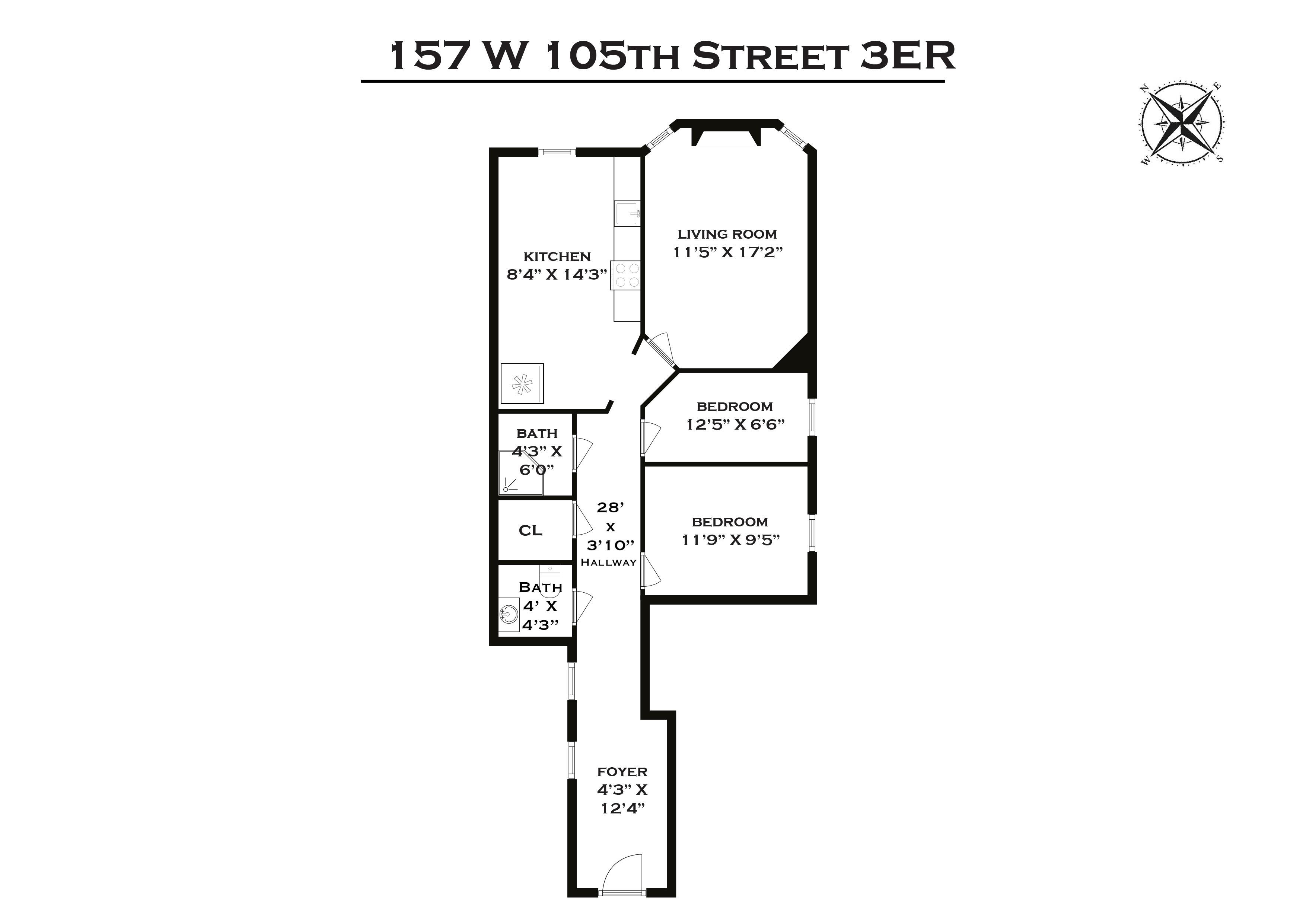 Spacious 2Br/1Bth with soaring ceilings, gallery-style entry hallway with lots of walls for hanging your favorite art , windowed Eat in kitchen, large living room perfect for entertaining and two quiet bedrooms. There are lots of windows and ample storage space.