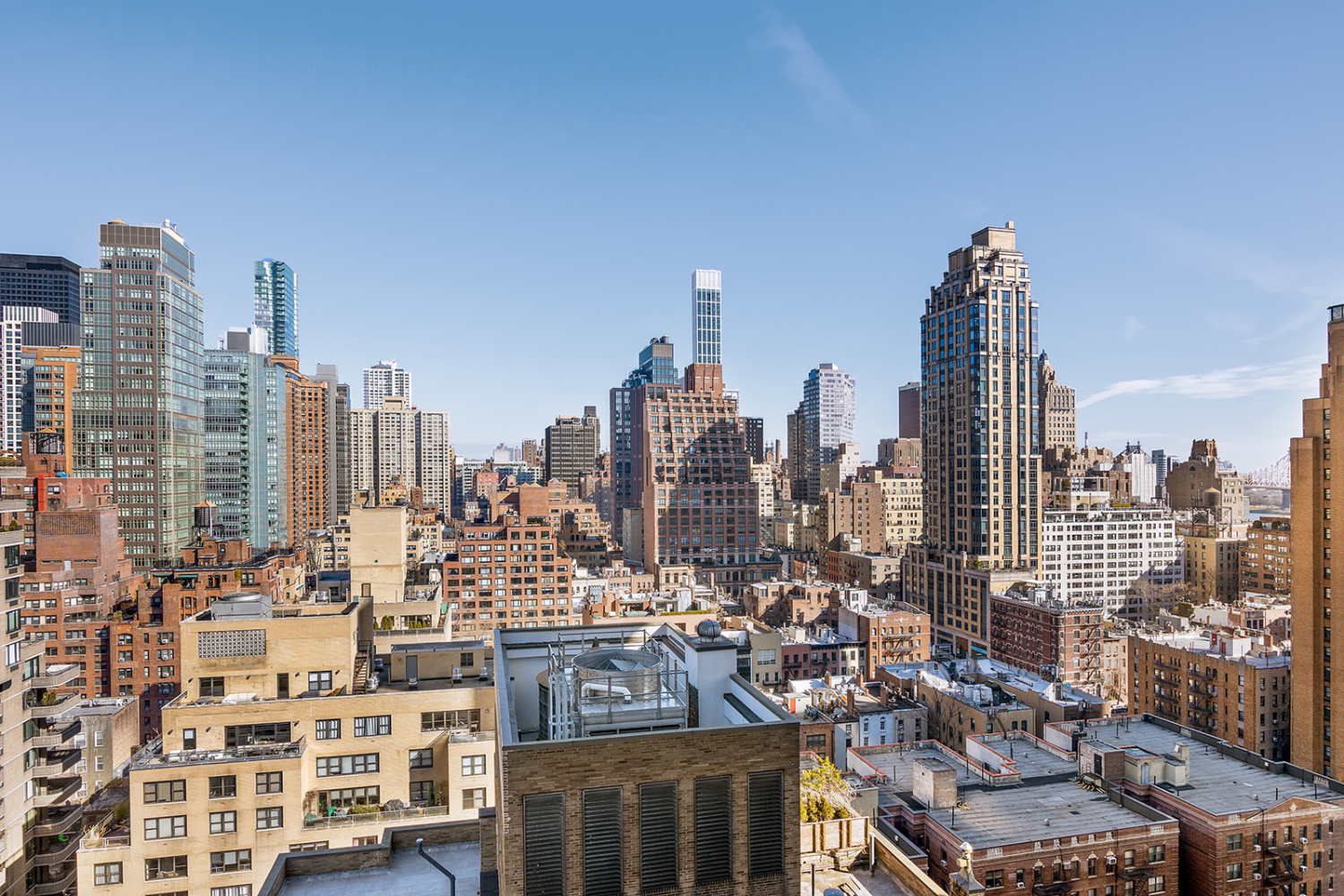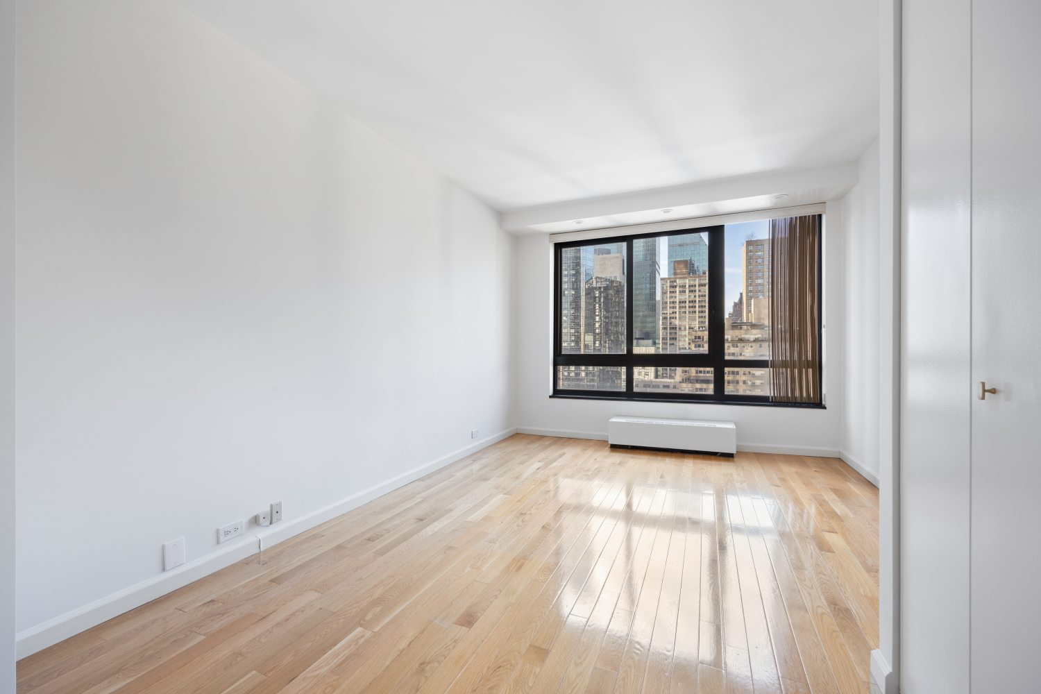 The E-line at 100 United Nations Plaza on the 20th floor is coveted for its open northern and southern panoramas. From the sun-drenched great room enjoy entertaining and dining with open views of the iconic southern skyline. The apartment's generously-proportioned living space is nearly 30-feet long, boasts floor-to-ceiling windows with sliding doors, and provides seating arrangement flexibility with room for dining for 10 or more. The renovated windowed kitchen has a western exposure, granite countertops and backsplash, custom wood cabinets, recessed lighting, and stainless-steel appliances from Sub Zero, Bosch, Miele, and GE.