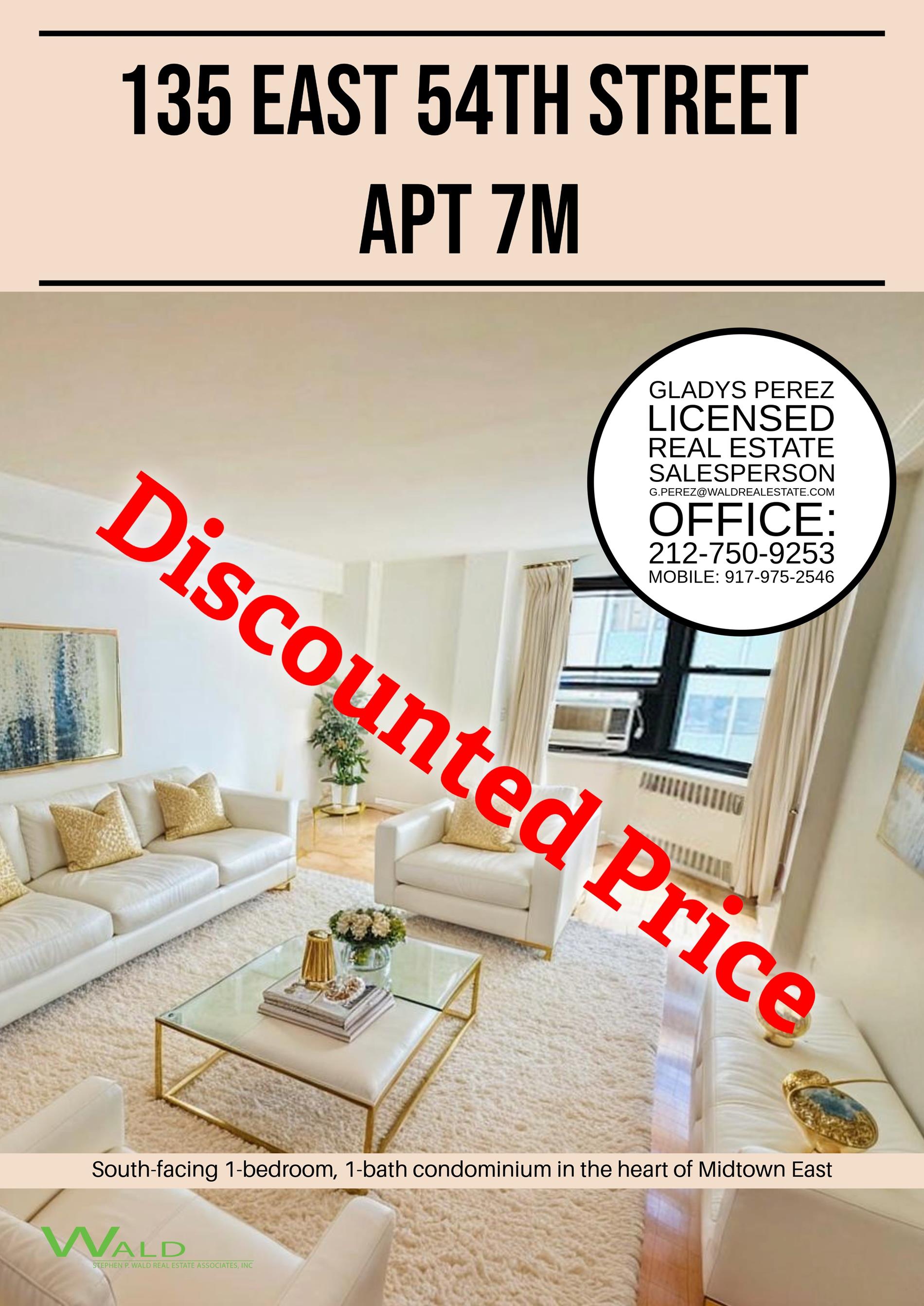 Don’t miss this rare estate sale opportunity to own a spacious, South-facing 1-bedroom, 1-bath condominium in the heart of Midtown East. This 7th-floor home offers excellent light and layout flexibility — easily convertible into a 2-bedroom!!!