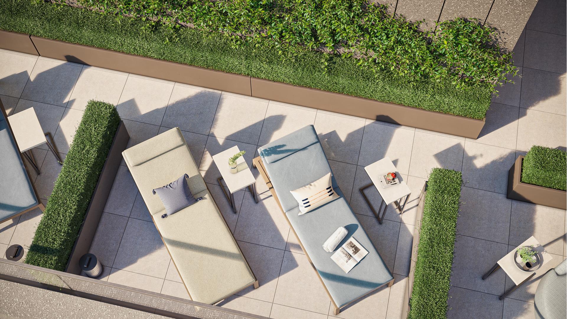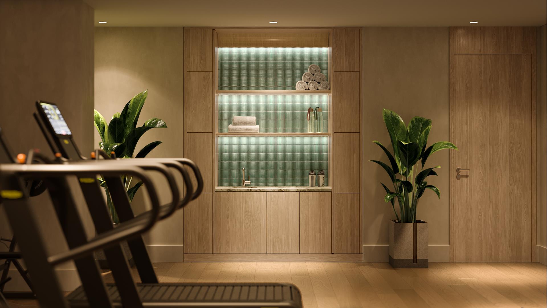 Wellness and sustainability are at the core of VITA, supported by an unmatched amenity suite. Each building features a 24/7 attended reception with Amazon Hub parcel lockers, while a passageway allows for connected amenities, including a Residents" Lounge with entertaining kitchen, two Technogym-equipped Fitness Centers, a serene spa suite with steam, sauna, experiential shower, and treatment room, a virtual golf simulator, and two landscaped rooftop Sky Parks with BBQ grills, dining areas, and stunning skyline views.