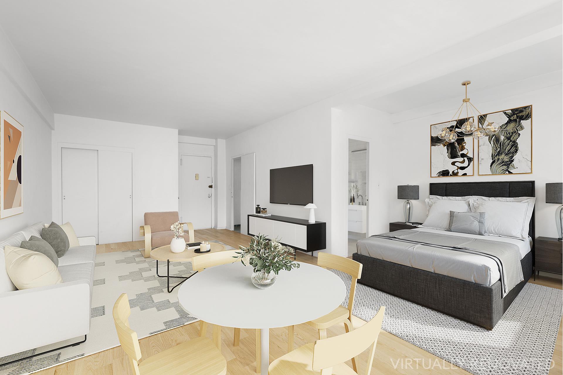 Built in 1954 and converted to a cooperative in 1981, the building comprises 333 residences across 15 floors, separated by a beautifully landscaped private courtyard. Residents enjoy a range of amenities, including a bike room, storage, and access to the fitness center at 5 Tudor City Place (available for extra cost). The co-op welcomes pied- -terres, co-purchasing, and parental purchases for kids, offering flexibility to suit various lifestyles. Notably, the monthly maintenance includes electricity, adding to the convenience of ownership.