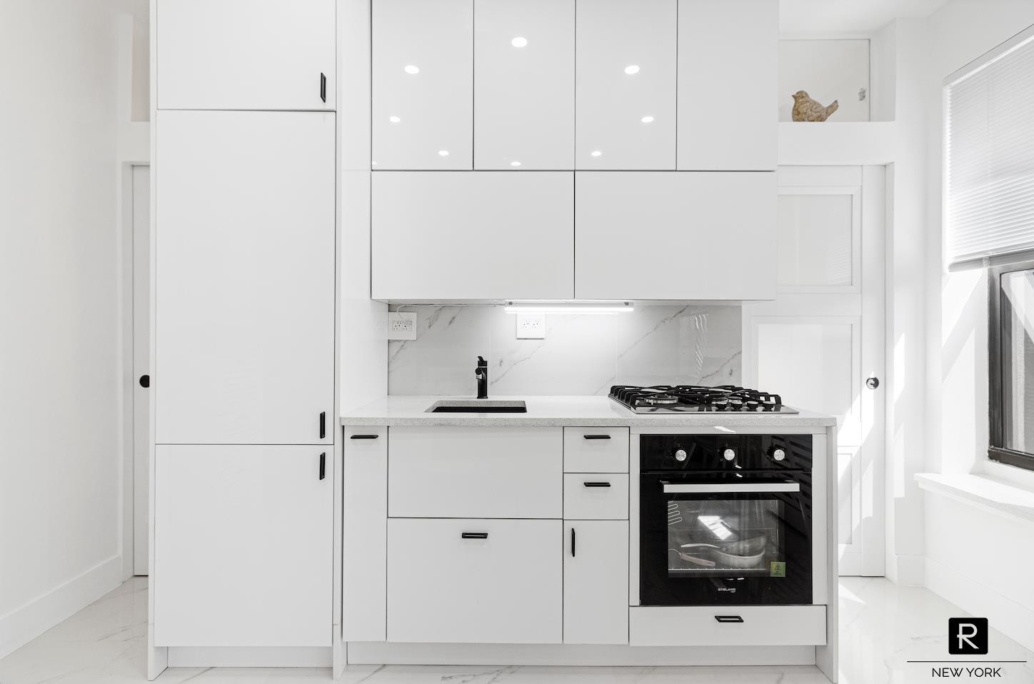 The must see 3-room Alcove Studio on the top floor is silent, features five windows, floods with natural light throughout the day, and is the only unit in the building which has been meticulously gut renovated down to the studs including white stone flooring in every room, and thoughtful overhead lighting. Every inch touched with a modern brush making this home beyond compare and a must see for qualified buyers.