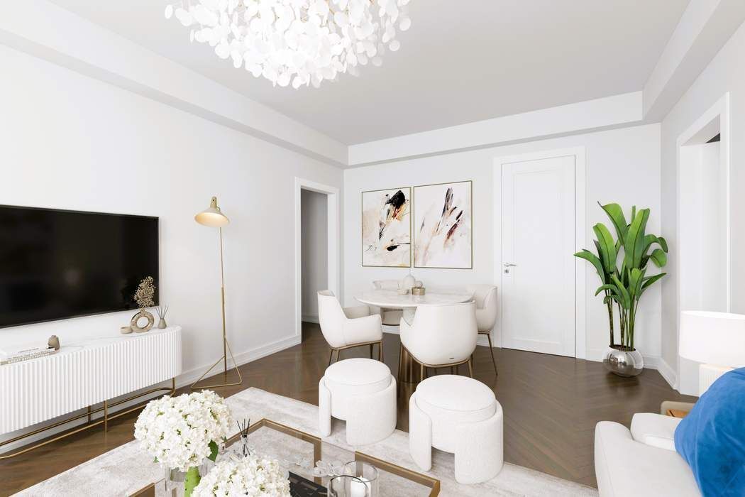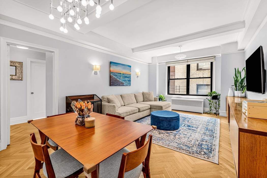 RENOVATED. PRE-WAR. FULL-SERVICE. LOCATION, LOCATION, LOCATION! Welcome to Apartment 8E — a meticulously renovated, light-filled 2-bedroom, 1.5-bath home in one of the Upper West Side’s most architecturally significant full-service co-ops. Situated on prestigious West End Avenue, this elegant residence offers the perfect blend of timeless pre-war charm and sophisticated modern living, just one block from Riverside Park and moments to Central Park, Zabar’s, the Museum of Natural History, and an abundance of fine dining, cafes, and boutique shopping. Upon entering, you are greeted by a spacious, welcoming foyer with a large, custom-designed closet that sets the tone for the thoughtful attention to detail found throughout the home. The grandly scaled living and dining area (approximately 21’ x 13’) is ideal for both everyday living and entertaining. Crown moldings, original glass doorknobs, herringbone hardwood floors, and tall beamed ceilings evoke the elegance of another era, while oversized windows invite in natural light, creating a warm and inviting atmosphere. The heart of this home is the beautifully appointed, windowed chef’s kitchen. Designed with both aesthetics and functionality in mind, it features custom cabinetry, sleek countertops, a coffee bar, under counter dining and high-end appliances including a Subzero refrigerator, GE profile gas oven & microwave, Miele dishwasher, wine refrigerator and an in-unit Bosch washer and dryer. Whether you’re preparing a casual breakfast or hosting a dinner party, this kitchen delivers both style and substance. A peaceful corridor leads to the private bedroom wing. The king-sized primary bedroom boasts bright northeast exposures and a full wall of closets. There is ample space for additional furniture or a home office setup. The second bedroom is equally spacious and is currently configured as a kids room. With generous closet space and abundant light, it comfortably accommodates king-sized furnishings and offers versatile use. The spa-like, windowed bathroom has been was gut renovated and features a spa like glass-enclosed rain shower. A separate, handsomely renovated powder room—ideally located off the kitchen—adds convenience and privacy for guests. Additional features include designer blackout shades, abundant custom closets and a private storage cage that transfers with the sale. Apartment 8E is a rare offering—a gracious and elegant home in a premier location that effortlessly marries historic charm with modern luxury. This is Upper West Side living at its finest. Set in an impeccably maintained cooperative designed by the acclaimed architectural duo Schwartz & Gross, 440 West End Avenue offers residents a full suite of white-glove amenities: 24-hour doorman, live-in superintendent, newly renovated lobby and hallways, modern fitness center, residents’ lounge, children’s playroom, bike room, and a beautifully landscaped roof deck offering panoramic views of the Manhattan skyline and Riverside Park. With only four apartments per floor, privacy and tranquility are a given. 75% financing permitted, pet-friendly policies, and the flexibility of co-purchasing and guarantors. NOT TO BE MISSED!