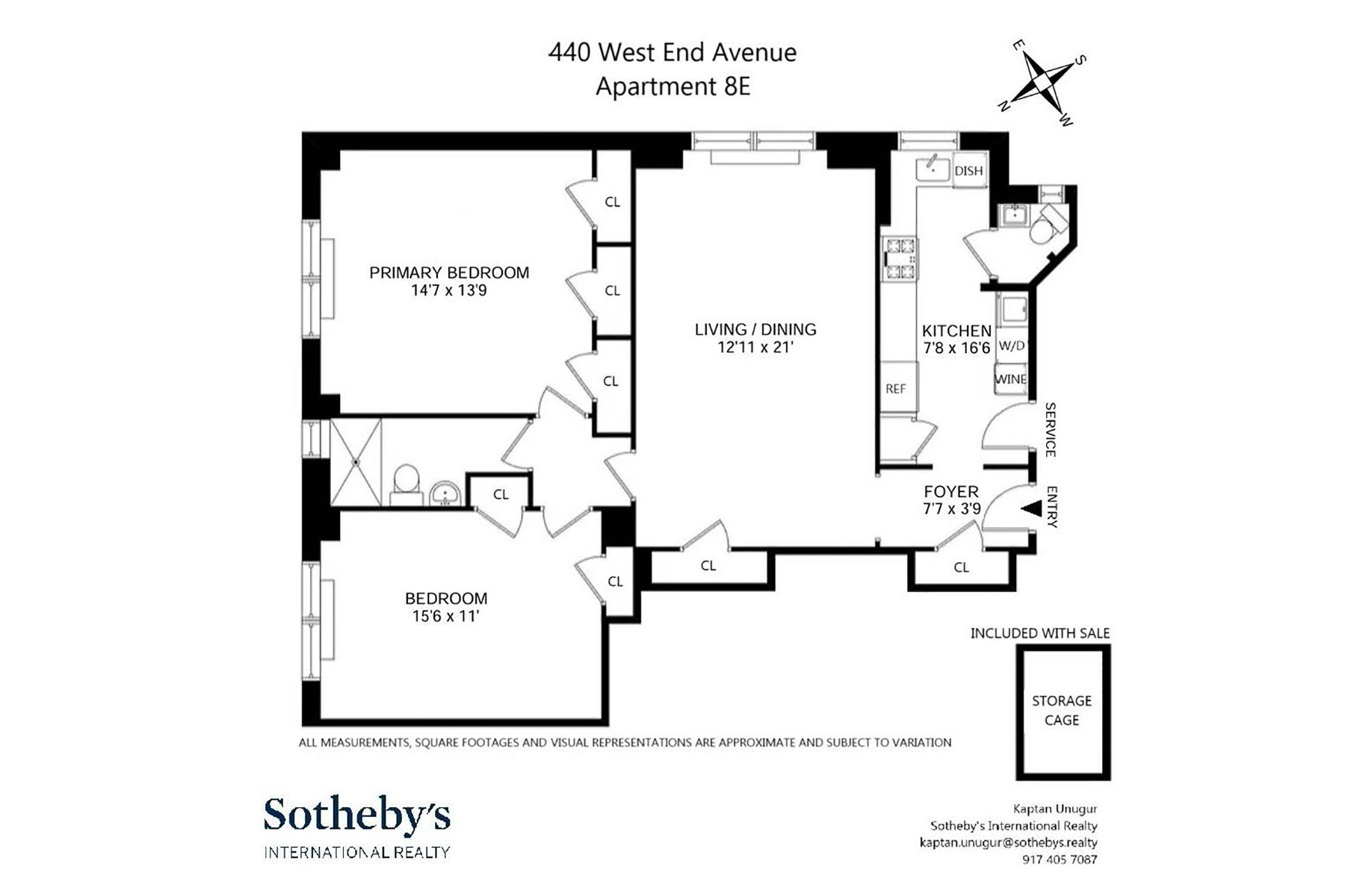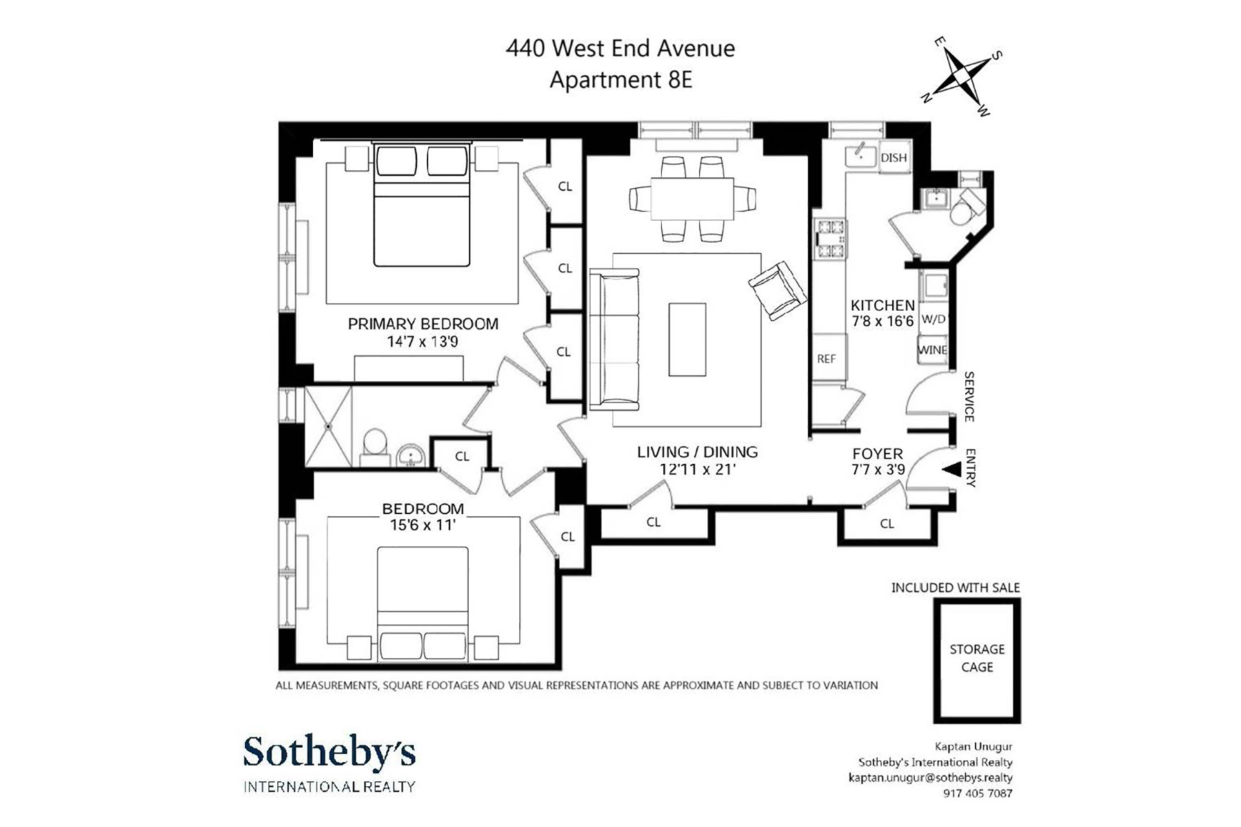 • RENOVATED. PRE-WAR. FULL-SERVICE. LOCATION, LOCATION, LOCATION! Welcome to Apartment 8E — a meticulously renovated, light-filled 2-bedroom, 1.5-bath home in one of the Upper West Side’s most architecturally significant full-service co-ops. Situated on prestigious West End Avenue, this elegant residence offers the perfect blend of timeless pre-war charm and sophisticated modern living, just one block from Riverside Park and moments to Central Park, Zabar’s, the Museum of Natural History, and an abundance of fine dining, cafes, and boutique shopping. Upon entering, you are greeted by a spacious, welcoming foyer with a large, custom-designed closet that sets the tone for the thoughtful attention to detail found throughout the home. The grandly scaled living and dining area (approximately 21’ x 13’) is ideal for both everyday living and entertaining. Crown moldings, original glass doorknobs, herringbone hardwood floors, and tall beamed ceilings evoke the elegance of another era, while oversized windows invite in natural light, creating a warm and inviting atmosphere. The heart of this home is the beautifully appointed, windowed chef’s kitchen. Designed with both aesthetics and functionality in mind, it features custom cabinetry, sleek countertops, a coffee bar, under counter dining and high-end appliances including a Subzero refrigerator, GE profile gas oven & microwave, Miele dishwasher, wine refrigerator and an in-unit Bosch washer and dryer. Whether you’re preparing a casual breakfast or hosting a dinner party, this kitchen delivers both style and substance. A peaceful corridor leads to the private bedroom wing. The king-sized primary bedroom boasts bright northeast exposures and a full wall of closets. There is ample space for additional furniture or a home office setup. The second bedroom is equally spacious and is currently configured as a kids room. With generous closet space and abundant light, it comfortably accommodates king-sized furnishings and offers versatile use. The spa-like, windowed bathroom has been was gut renovated and features a spa like glass-enclosed rain shower. A separate, handsomely renovated powder room—ideally located off the kitchen—adds convenience and privacy for guests. Additional features include designer blackout shades, abundant custom closets and a private storage cage that transfers with the sale. Apartment 8E is a rare offering—a gracious and elegant home in a premier location that effortlessly marries historic charm with modern luxury. This is Upper West Side living at its finest. Set in an impeccably maintained cooperative designed by the acclaimed architectural duo Schwartz & Gross, 440 West End Avenue offers residents a full suite of white-glove amenities: 24-hour doorman, live-in superintendent, newly renovated lobby and hallways, modern fitness center, residents’ lounge, children’s playroom, bike room, and a beautifully landscaped roof deck offering panoramic views of the Manhattan skyline and Riverside Park. With only four apartments per floor, privacy and tranquility are a given. 75% financing permitted, pet-friendly policies, and the flexibility of co-purchasing and guarantors. NOT TO BE MISSED!