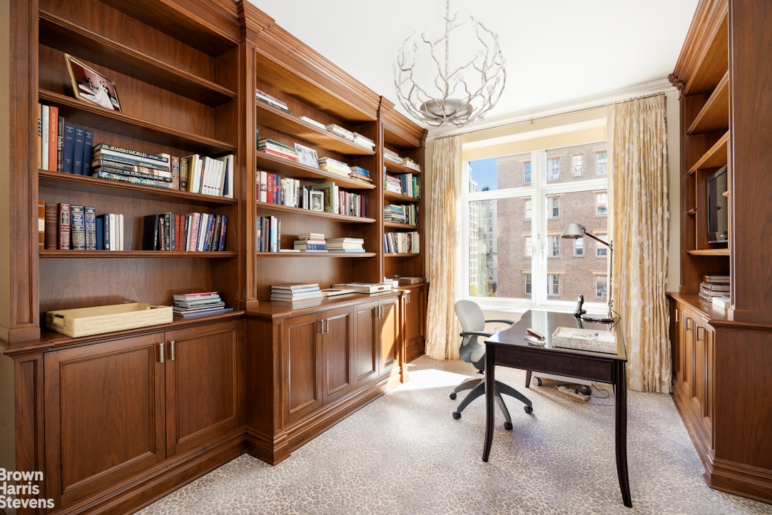 The formal entry gallery leads to a massive great room that flows seamlessly into the library off the kitchen, all of which face tree lined West End Avenue. The library can also be closed off and used as a 4th bedroom and has an en-suite bathroom. The custom Smallbone of Devizes kitchen features La Cornue, Miele, and Subzero appliances, copious amounts of storage space, two sinks, and an adjacent breakfast area.